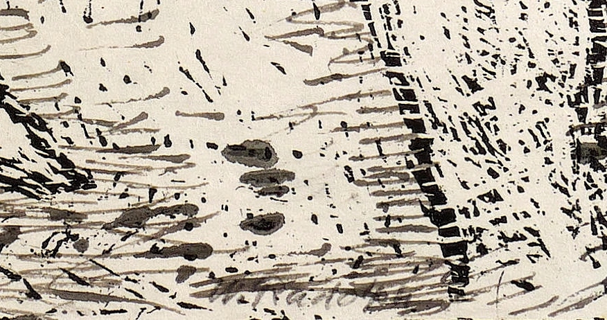 Rechts unten in Bleistift signiert: ″W. Rudolph″. – Stark mit Rohrferder überarbeitetes unikates Blatt. – Im rechten Rand unauffällig fleckig. Sonst gut erhalten.