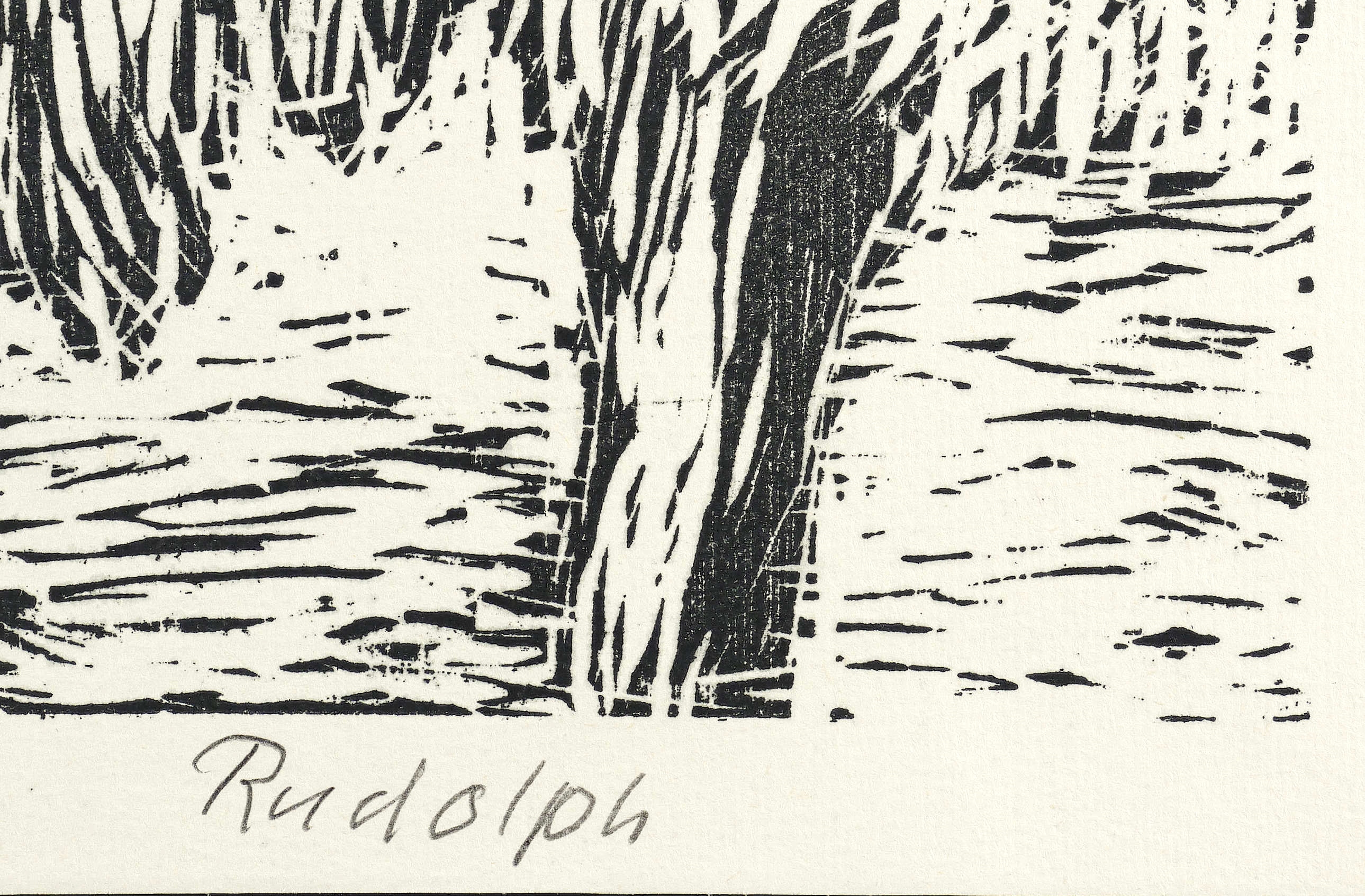 Wilhelm Rudolph (1889 Chemnitz - 1982 Dresden). Dresdner Maler und Grafiker. 1906-08 Lithografenlehre. 1908-14 Studium an der Akademie der Künste in Dresden bei Robert Sterl, Meisterschüler von Carl Bantzer. 1914-18 Soldat im Ersten Weltkrieg. Ab 1920 freischaffend in Dresden tätig. Mitglied der "Künstlervereinigung Dresden". 1932 Aufnahme der Lehrtätigkeit an der Dresdner Akademie der Künste, 1935 Professur. 1938 Entlassung und Ausstellungsverbot. 1945 Verlust des fast gesamten künstlerischen Werks durch die Bombenangriffe auf Dresden. 1946-49 erneute Lehrtätigkeit an der HfBK Dresden. 1961 Nationalpreis der DDR, Martin-Andersen-Nexö-Preis der Stadt Dresden, Kunstpreis des FDGB. 1979 Ehrenbürger der Stadt Dresden. 1980 Nationalpreis der DDR.