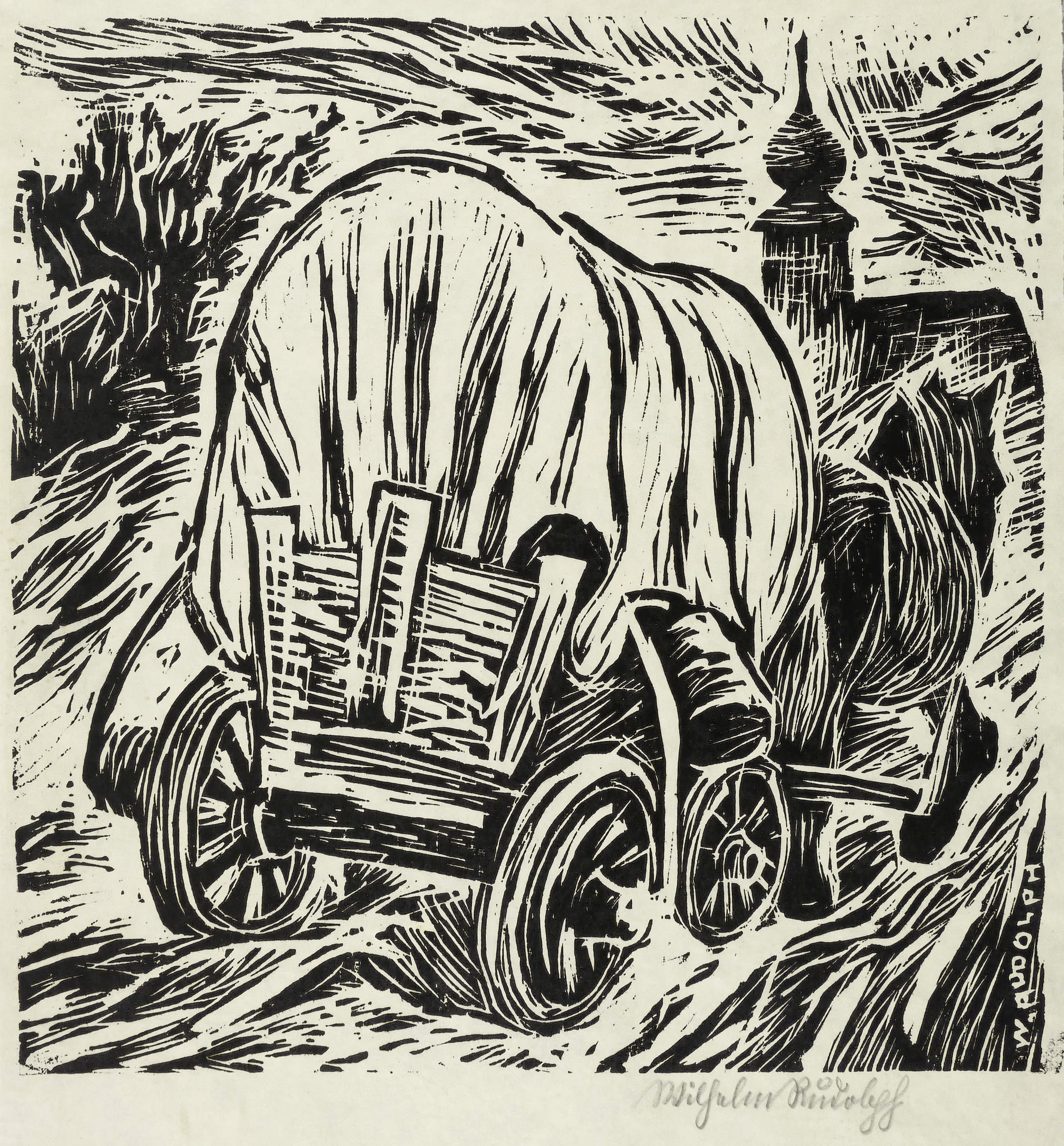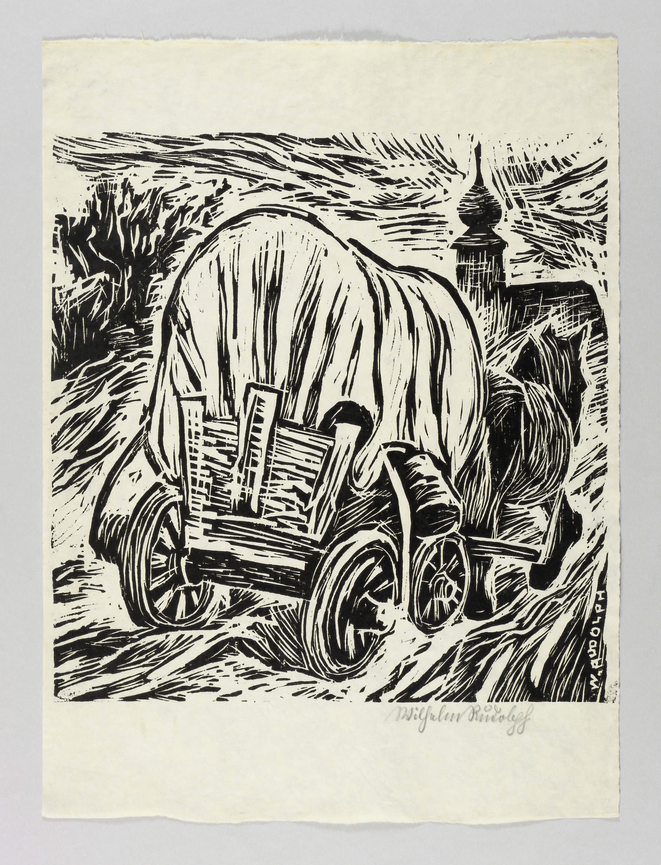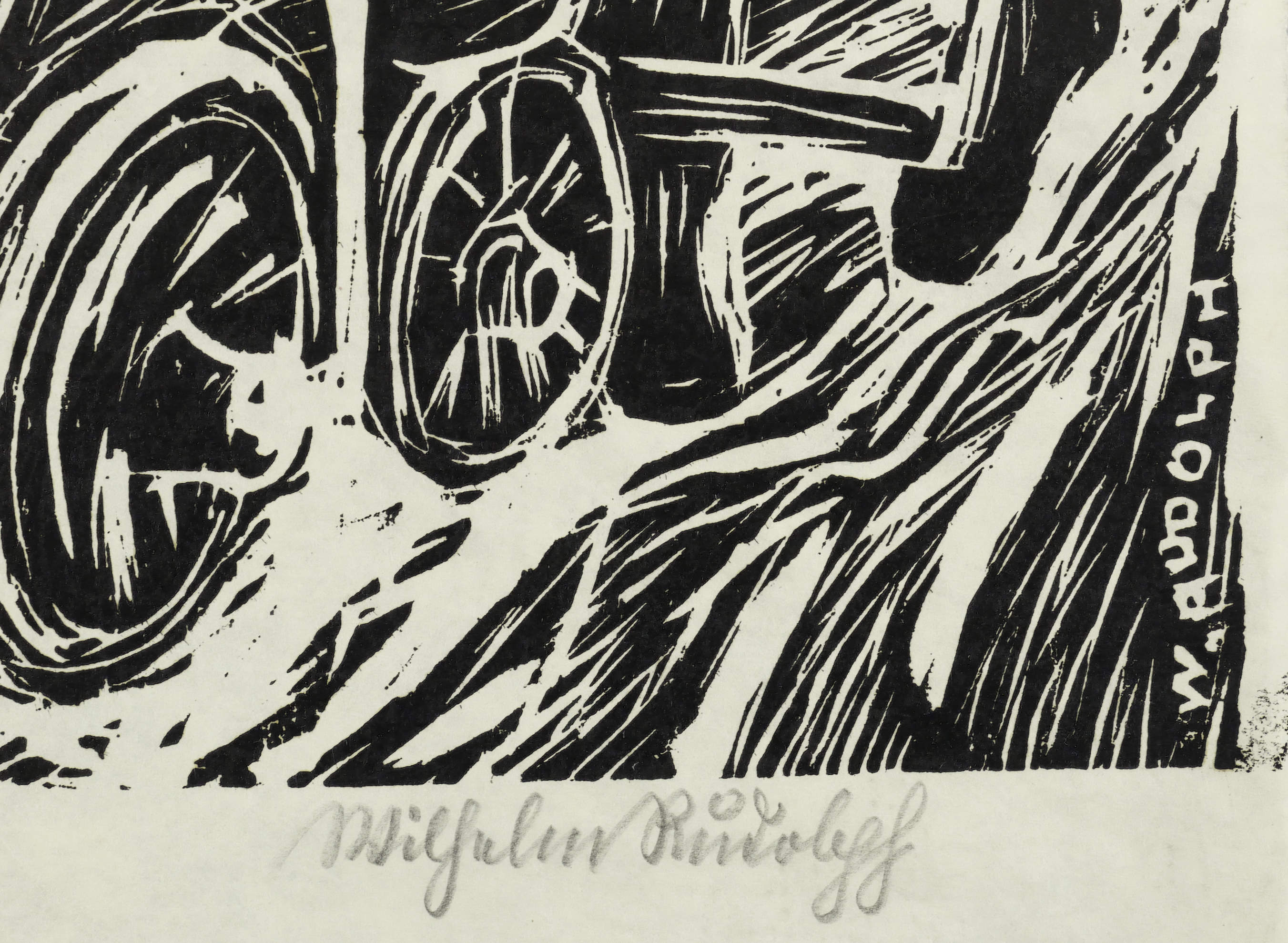 Schmidt (2014) 6. – Rechts unten in Bleistift signiert: ″Wilhelm Rudolph″. Im Holzstock rechts unten ebenfalls signiert: ″W. RUDOLPH″. – Einblatt-Handdruck des Künstlers! Nicht die originalgrafische Beilage zu ″Die Schaffenden″ vom Euphorion-Verlag (Jg. 5, 1925). - Vgl. Wilhelm Rudolph, Das Phantastischste ist die Wirklichkeit. Malerei und Holzschnitte, Bielefeld: Kerber 2014, S. 34, Abb. 6. – Schönes originalrandiges Blatt. Ohne Mängel. Sehr guter Zustand.