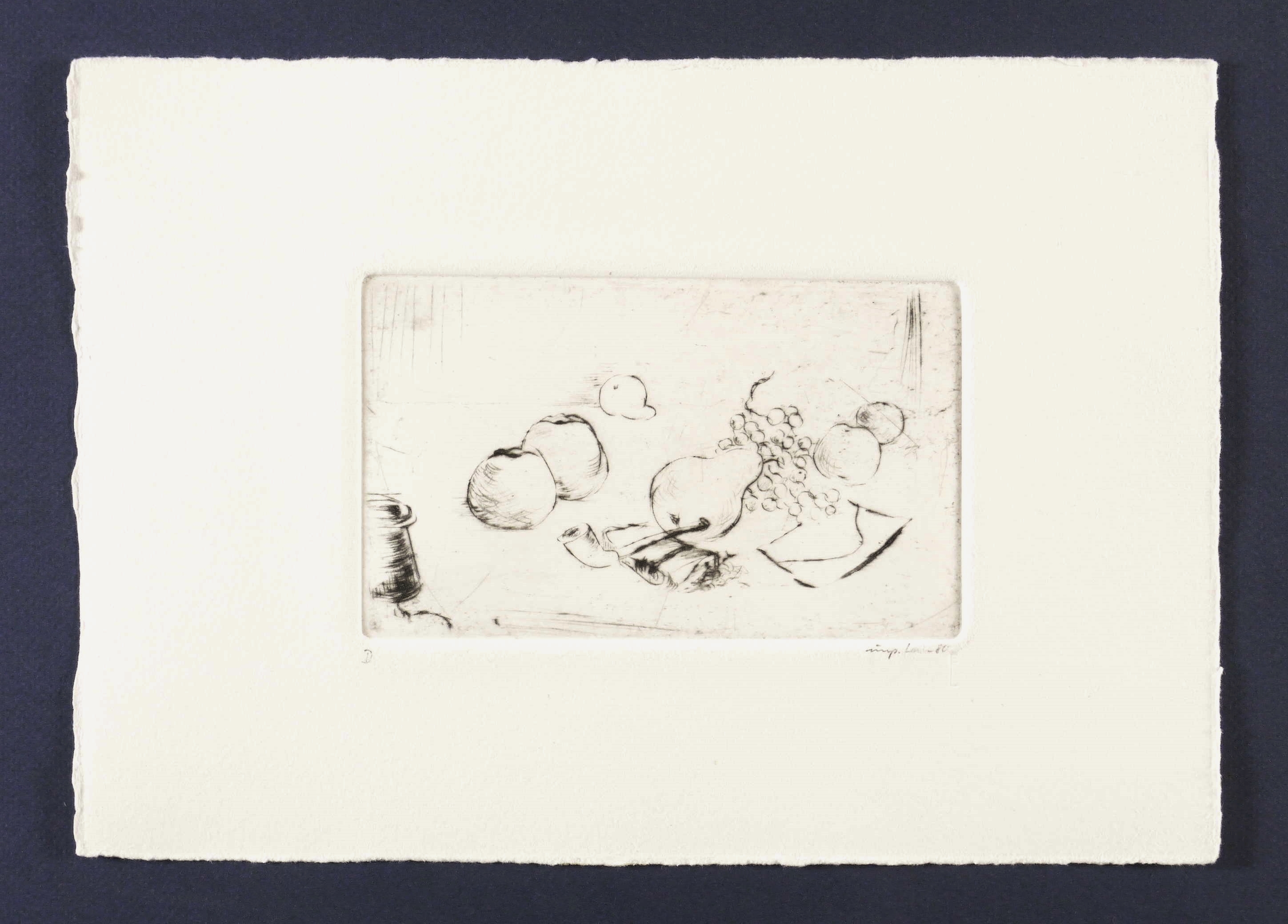 Schwimmer, Max. – „Früchtestillleben mit Tabakpfeife und Brief”.