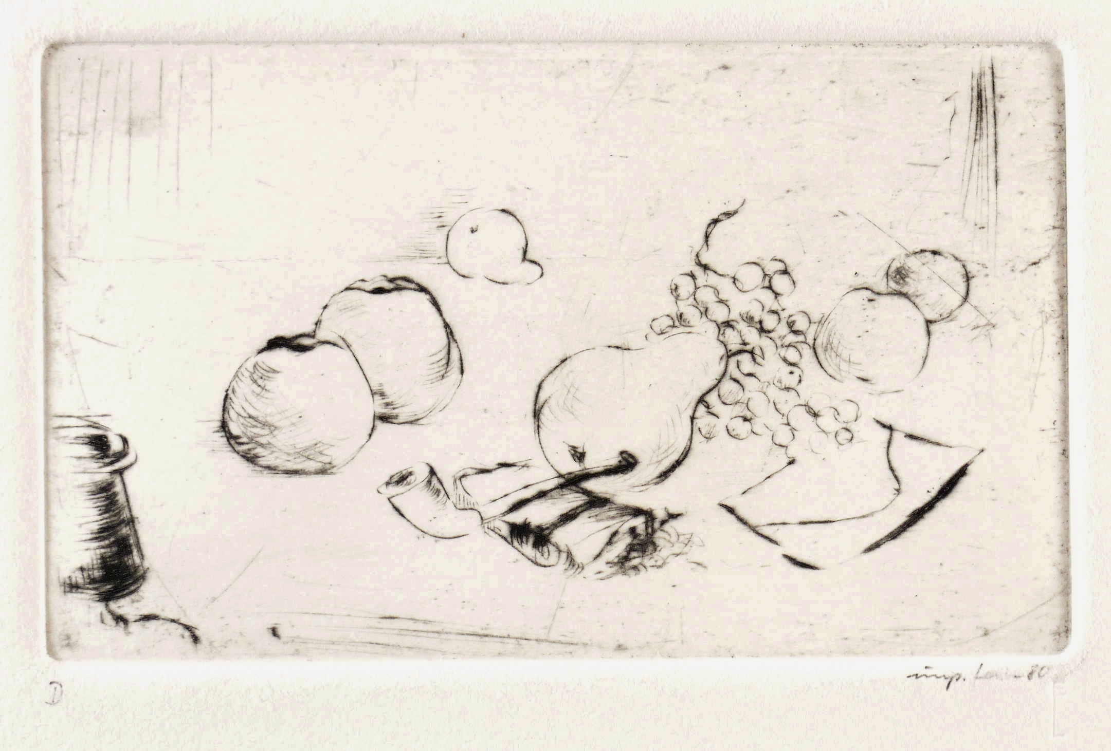 1938/1980. Radierung / Kaltnadel, in Schwarz, auf Hahnemühle-Bütten. – Originale Künstlergrafik, von Max Schwimmer. – Druckerexemplar. – 9,0 x 14,8 cm (Darstellung / Platte), 20 x 28 cm (Blatt).