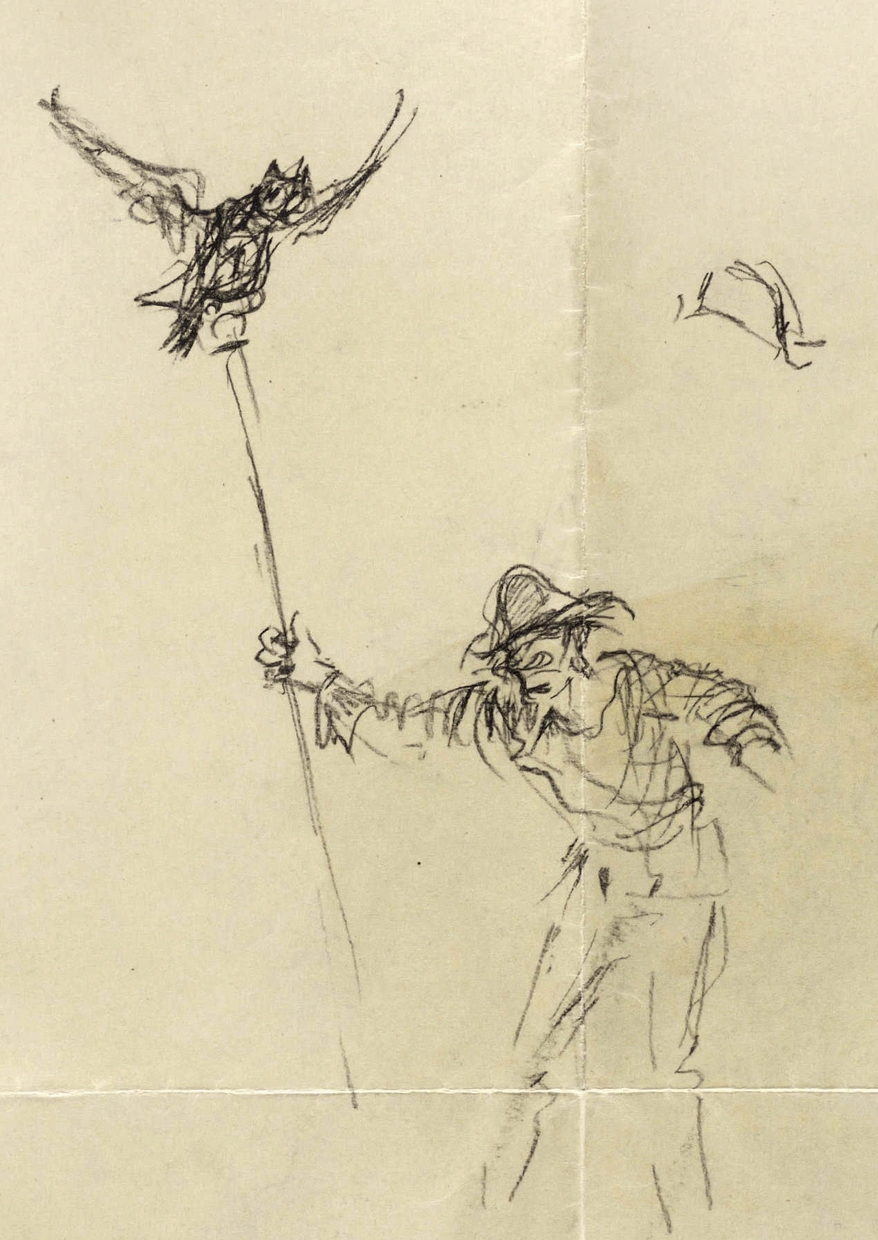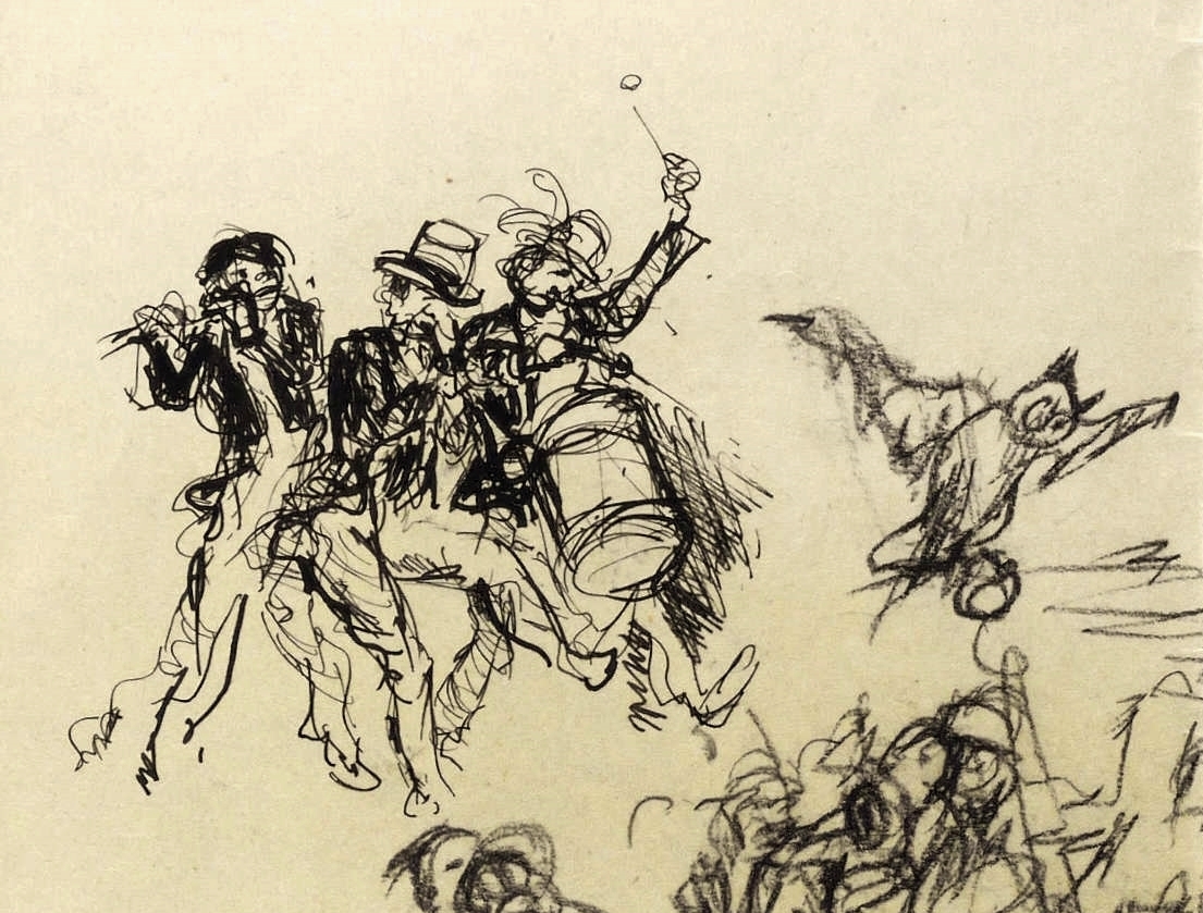1943. Zeichnung / Feder- & Kreidezeichnung, auf glattem gelbem Velin. – Originale Künstlergrafik, von Max Schwimmer. – Unikat. – 25,2 x 19,3 cm (Darstellung), 28 x 19,8 cm (Blatt).