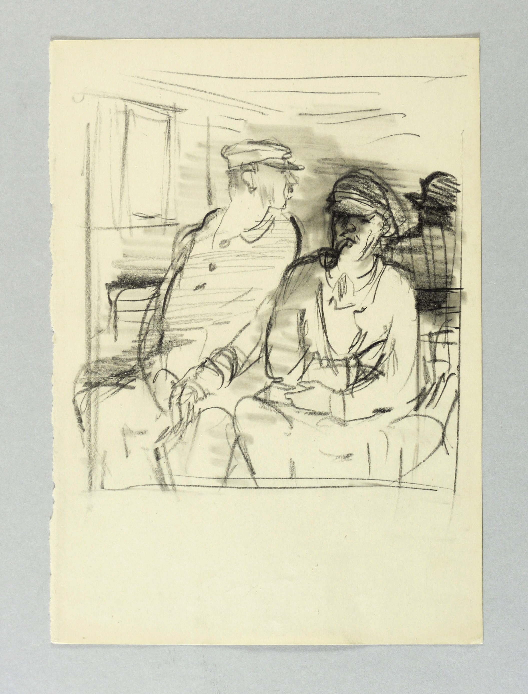 1924/1925. Zeichnung / Bleistiftzeichnung, partiell gewischt, auf leichtem hellgelbem Velin. – Originale Künstlergrafik, von Max Schwimmer. – Unikat. – 14,5 x 13,0 cm (Darstellung), 21,5 x 15 cm (Blatt).