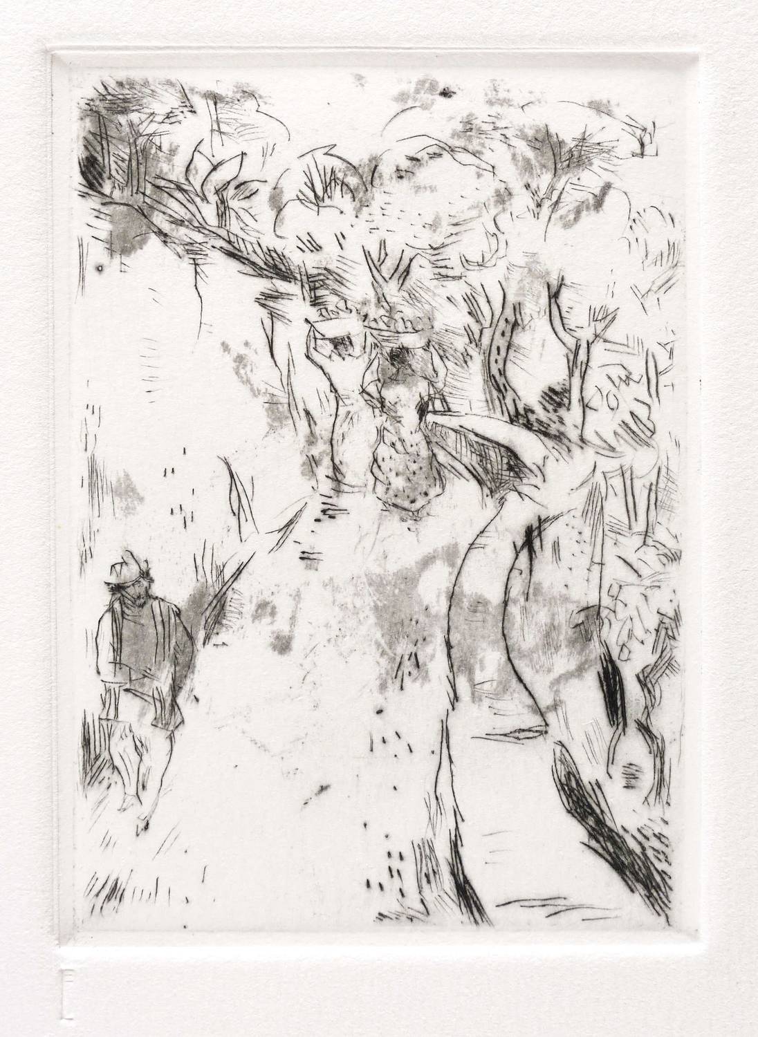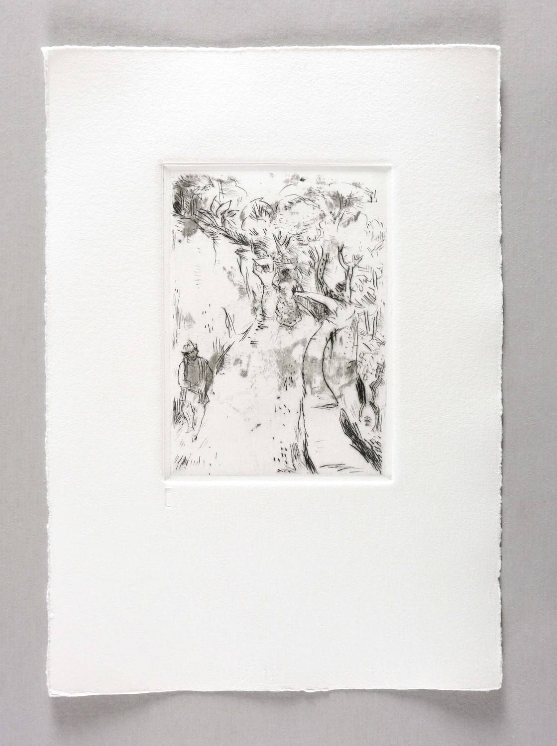 1924/1980. Radierung / Kaltnadel, in Schwarz, partiell mit Plattenton, auf Hahnemühle-Bütten. – Originale Künstlergrafik, von Max Schwimmer. – Druckerexemplar. – 13,8 x 10,0 cm (Darstellung / Platte), 29 x 20 cm (Blatt).