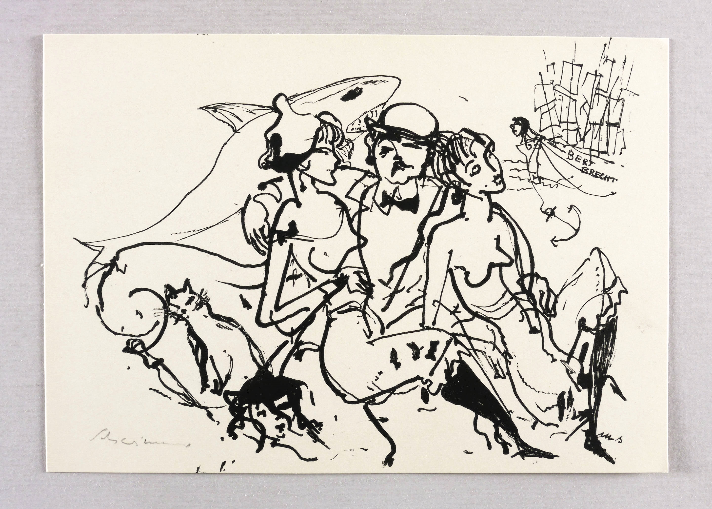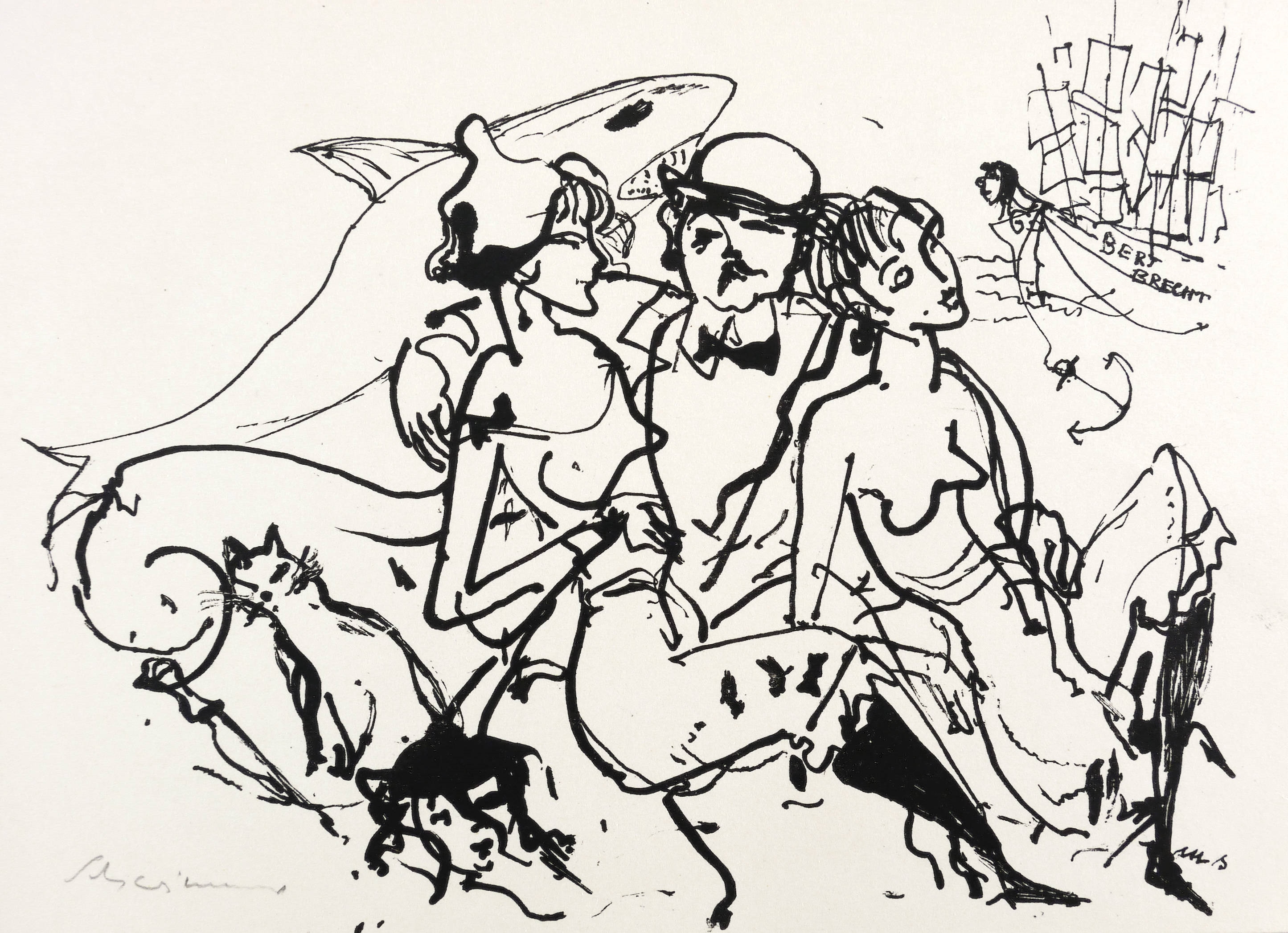 George 320. – Links unten in Bleistift signiert: ″Schwimmer″. Im Stein rechts unten Monogramm: ″MS″. Oben rechts im Bug des Schiffes Inschrift: ″BERT BRECHT″. – Tadellos. Sehr guter Zustand.