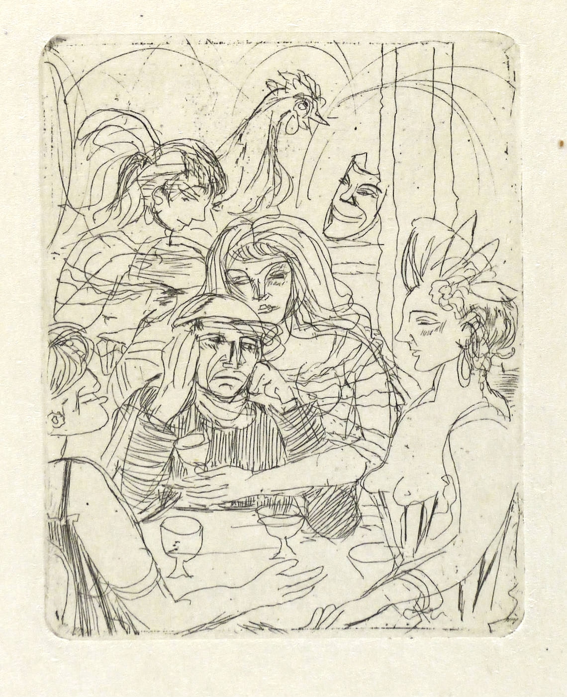 1953-1958. Radierung / Strichätzung, in Schwarz, auf festem chamois Maschinenpapier. – Originale Künstlergrafik, von Max Schwimmer. – 7,9 x 6,2 cm (Darstellung / Platte), 31 x 25 cm (Blatt).