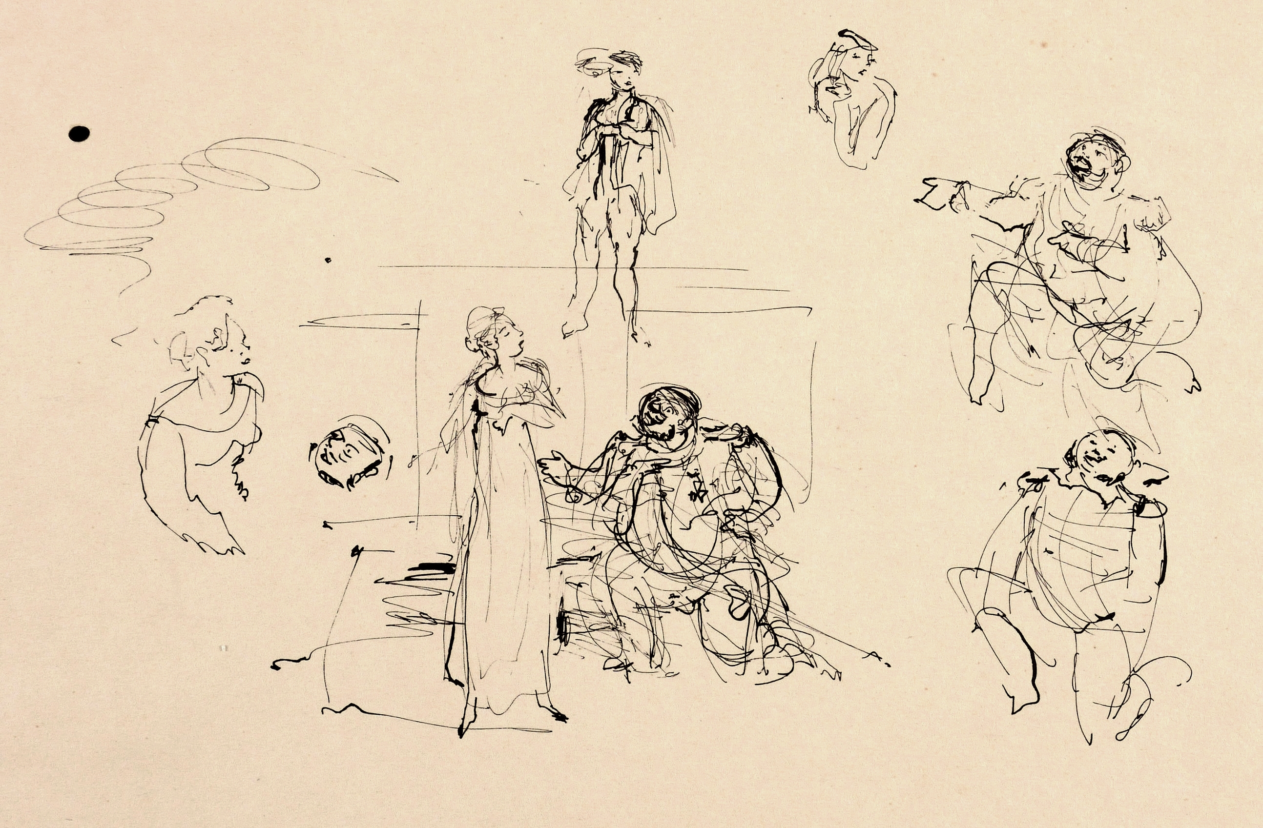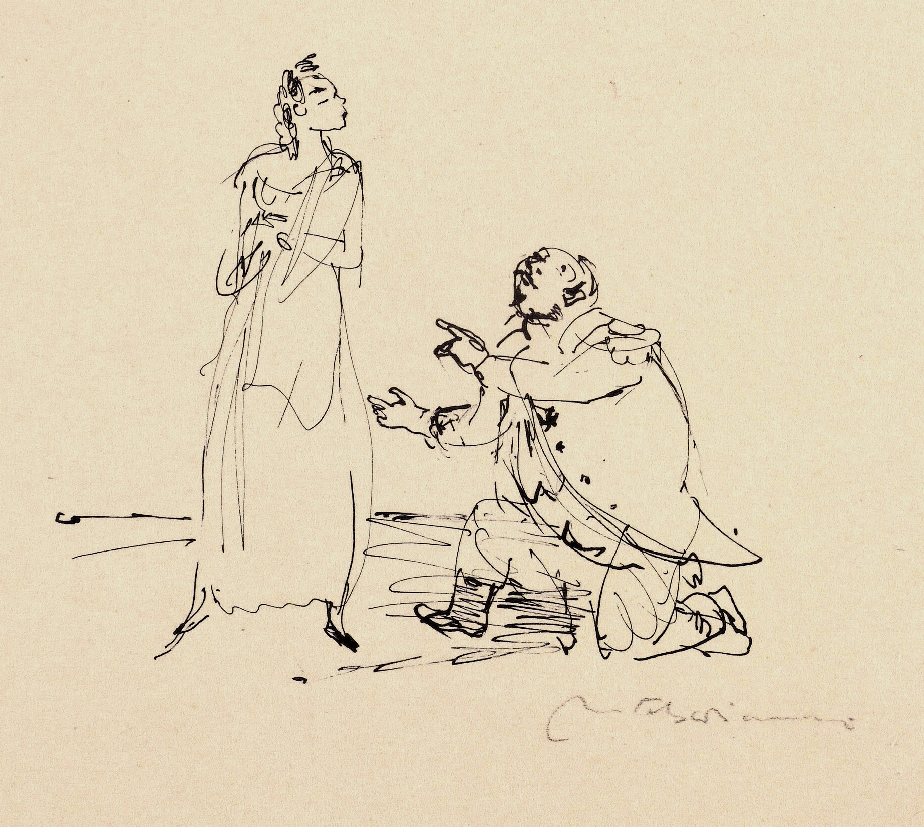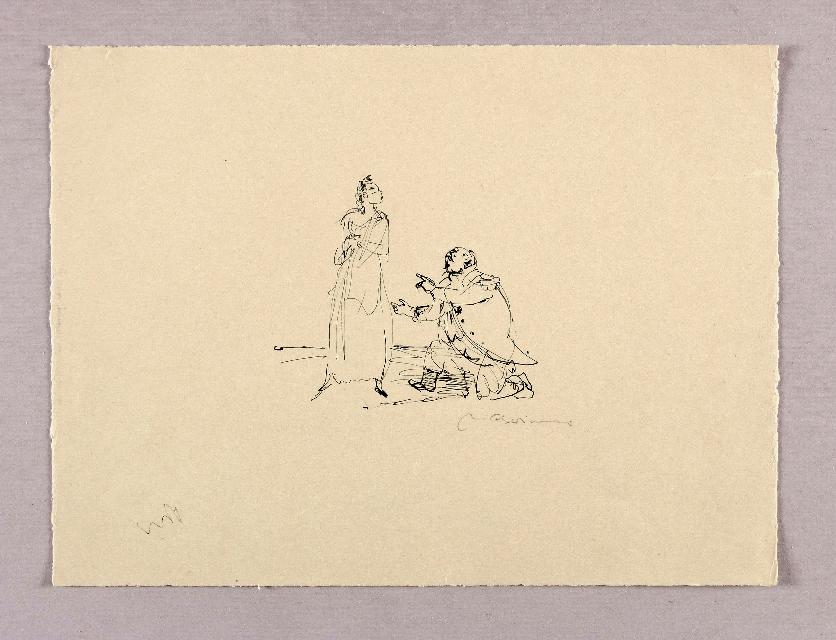 Rechts unten in Bleistift signiert: ″M. Schwimmer″. – Auf der Rückseite weitere Tusche-Skizzen zur Szene. – Provenienz: aus dem Nachlass von Herta Günther, die 1951-57 an der Dresdner Kunstakademie bei Max Schwimmer studierte. – Sehr guter Zustand.