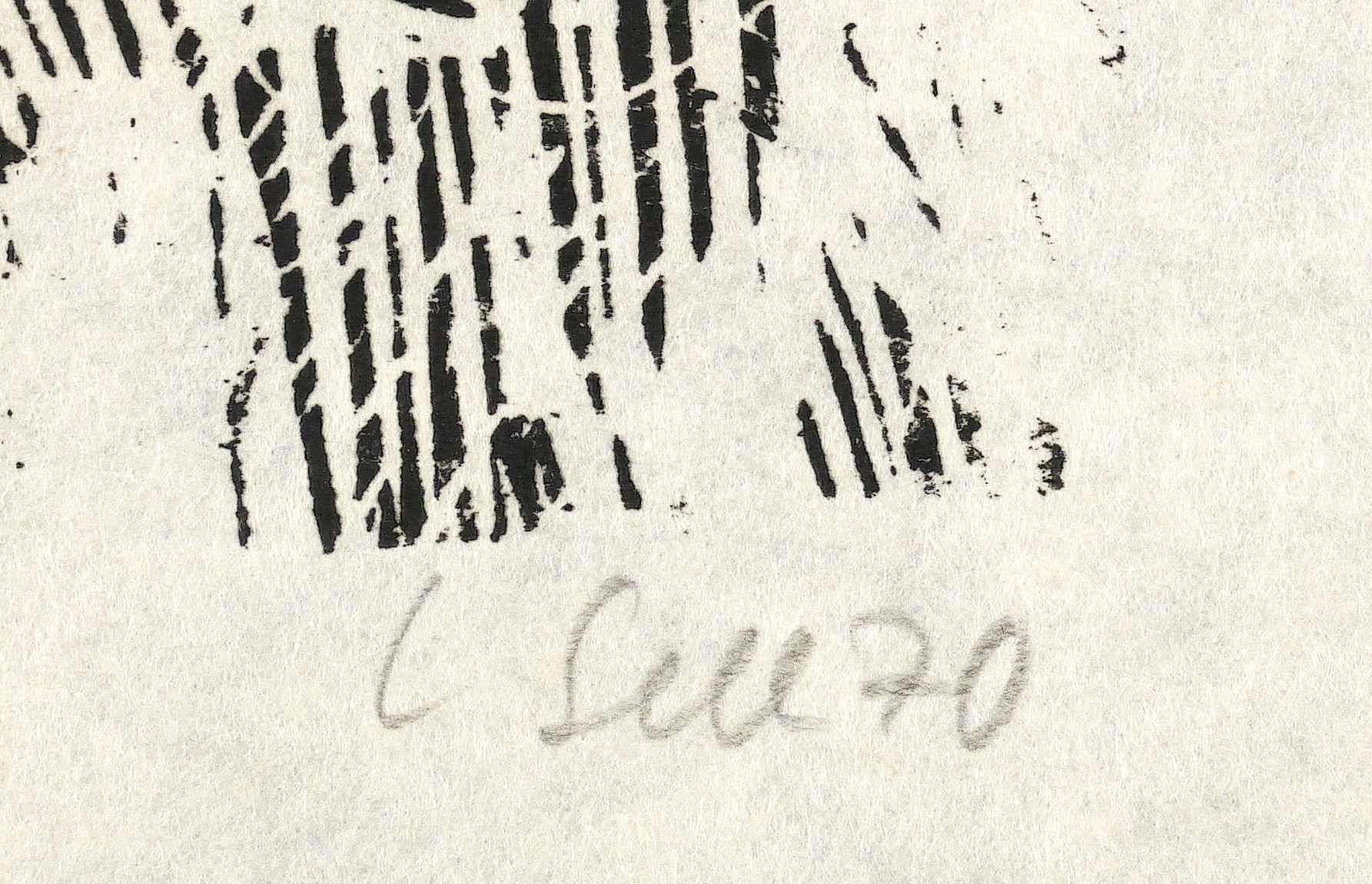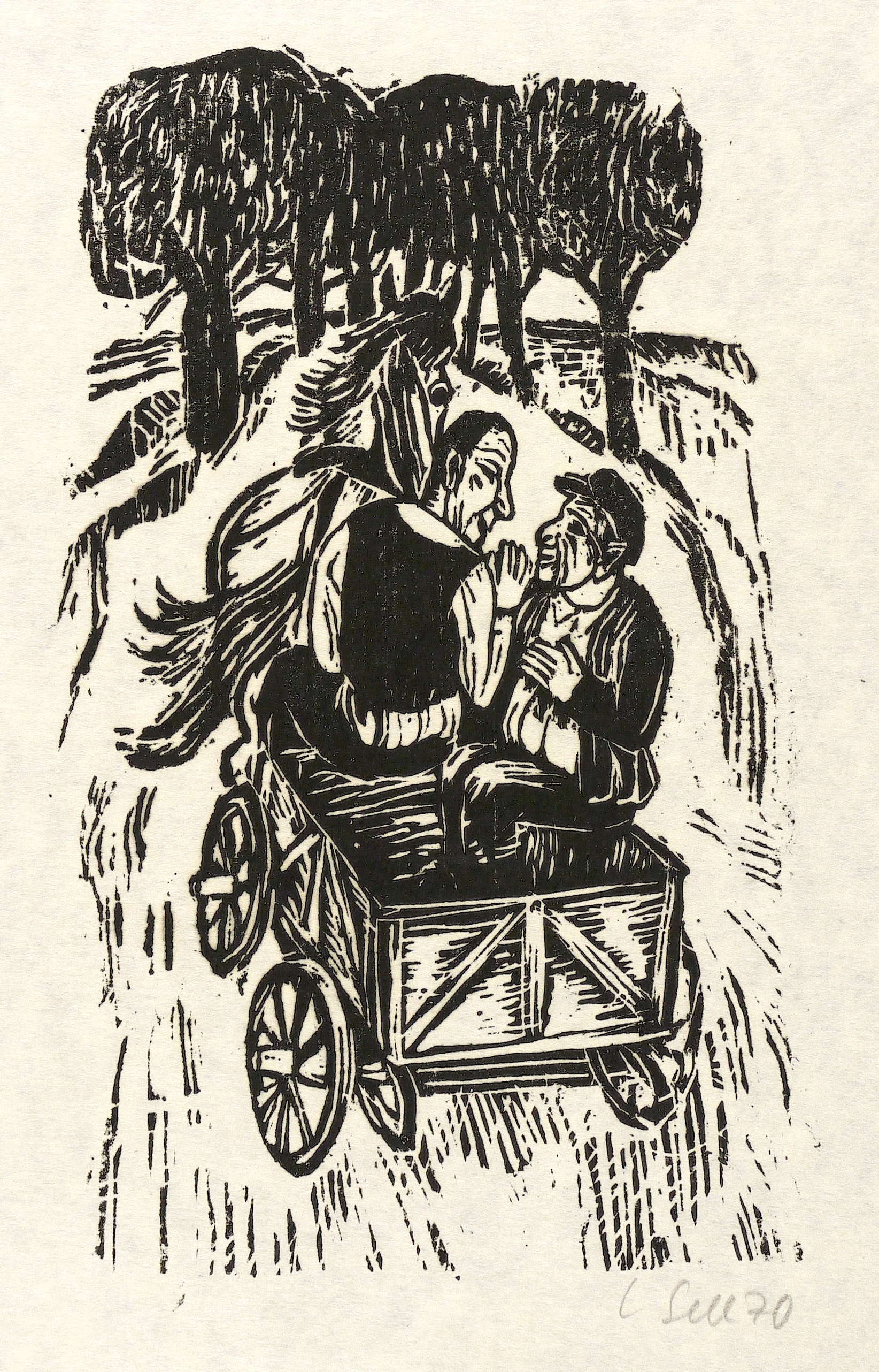 1970. Holzschnitt, in Schwarz, auf hellchamois Velin. – Originale Künstlergrafik, von Lothar Sell. – 22,0 x 13,0 cm (Darstellung / Druckbild), 29 x 26 cm (Blatt).