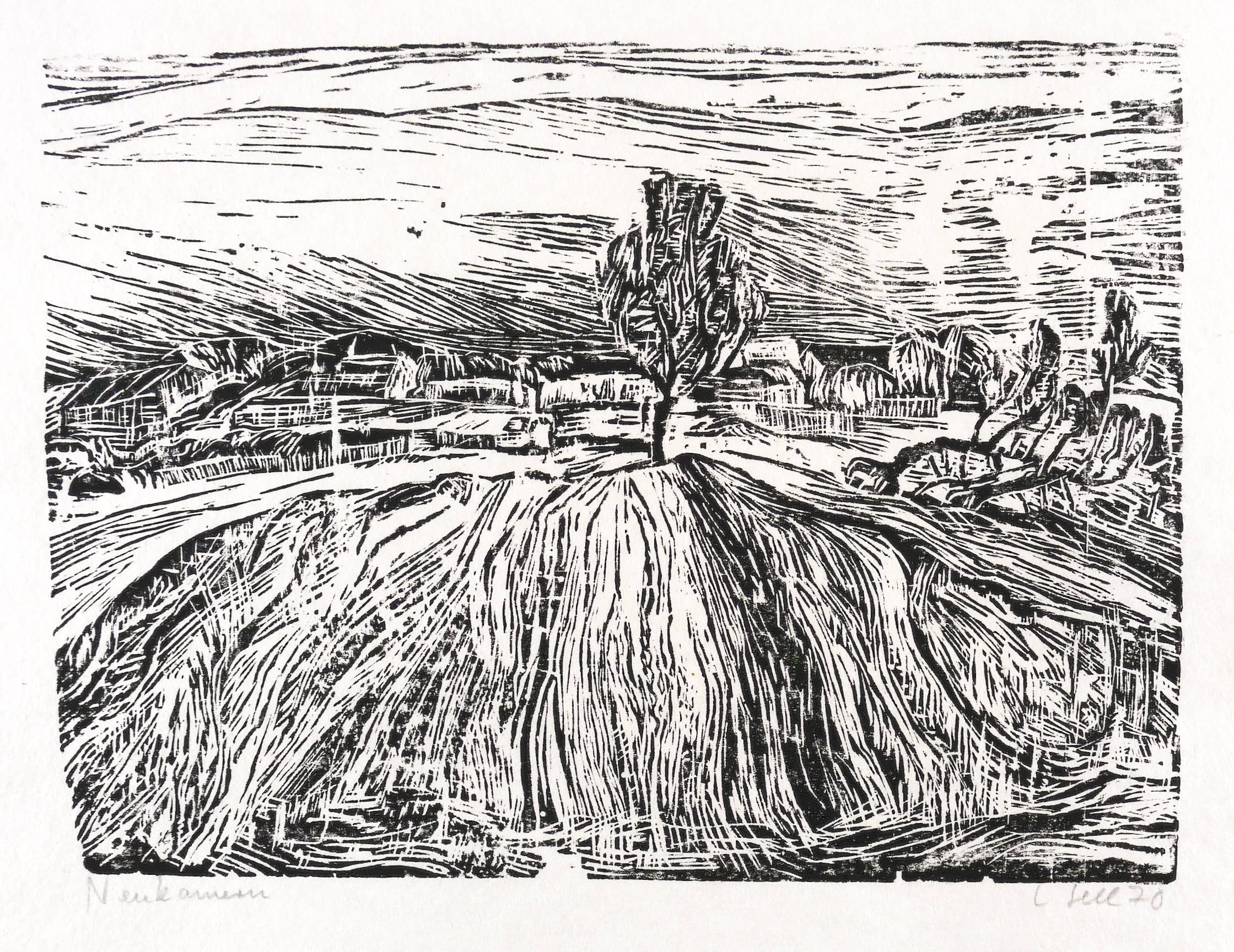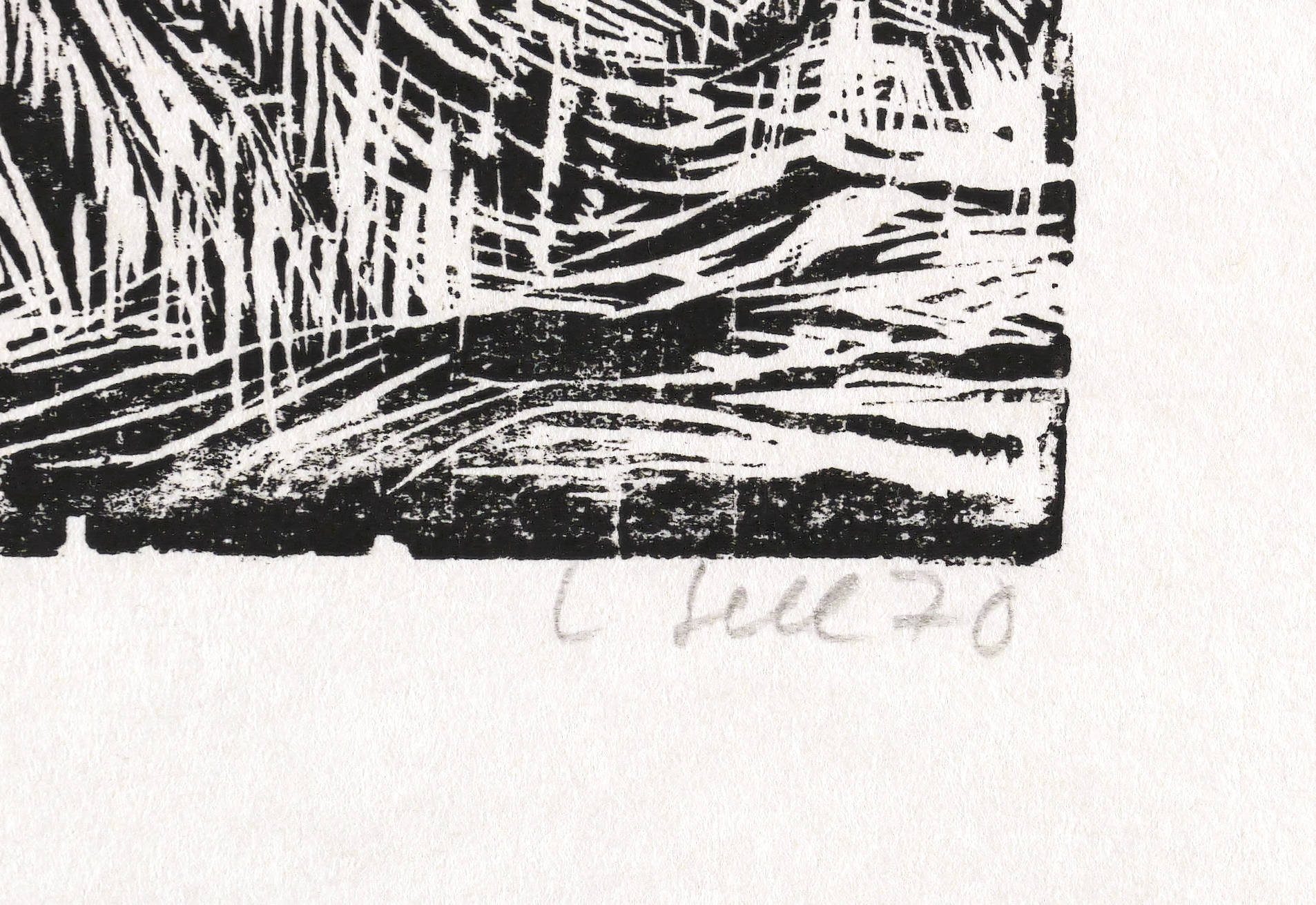 1970. Holzschnitt, in Schwarz, auf Chinapapier. – Originale Künstlergrafik, von Lothar Sell. – Auflage Exemplar Nr. 9/100. – 25,8 x 34,9 cm (Darstellung / Druckstock), 41 x 51 cm (Blatt).
