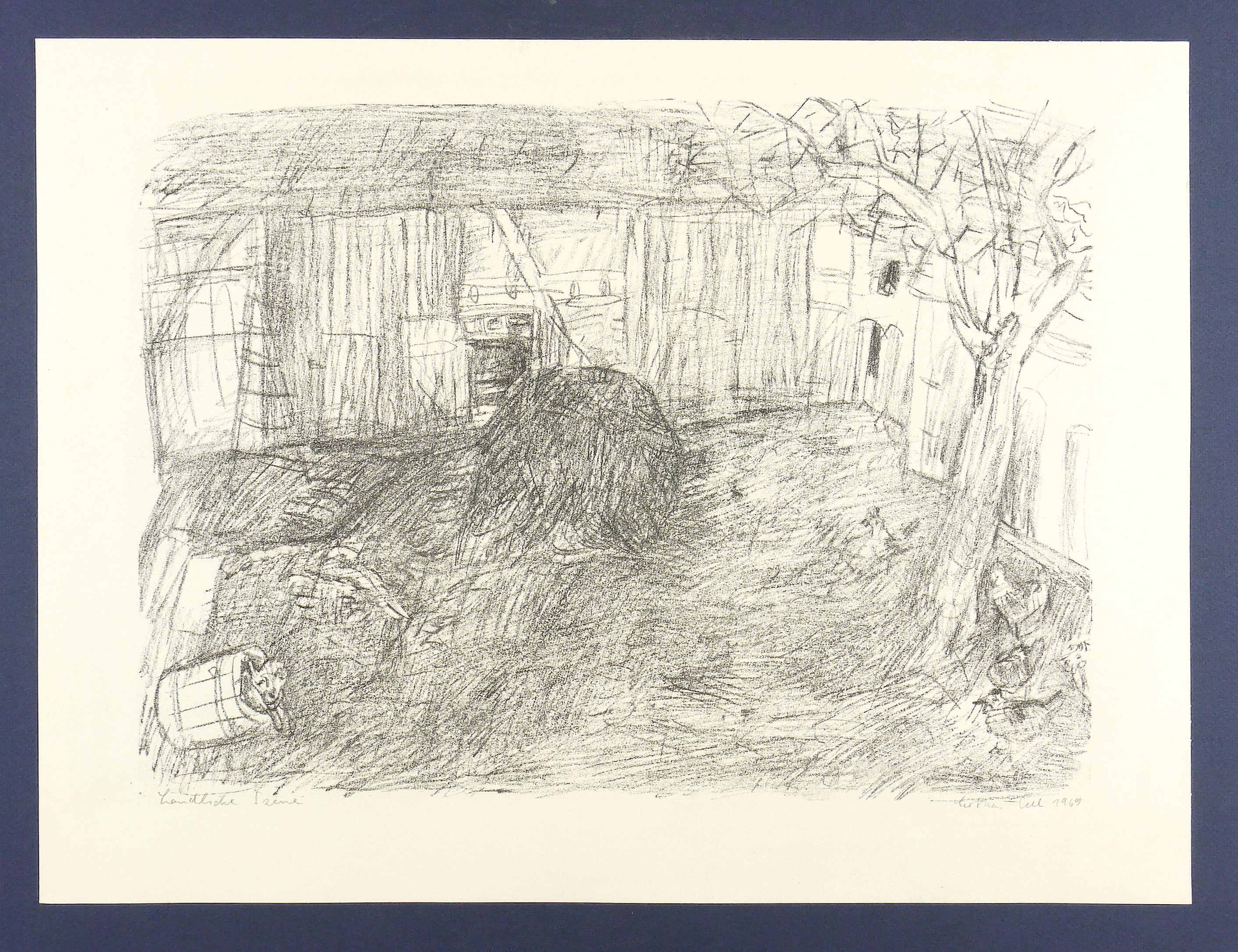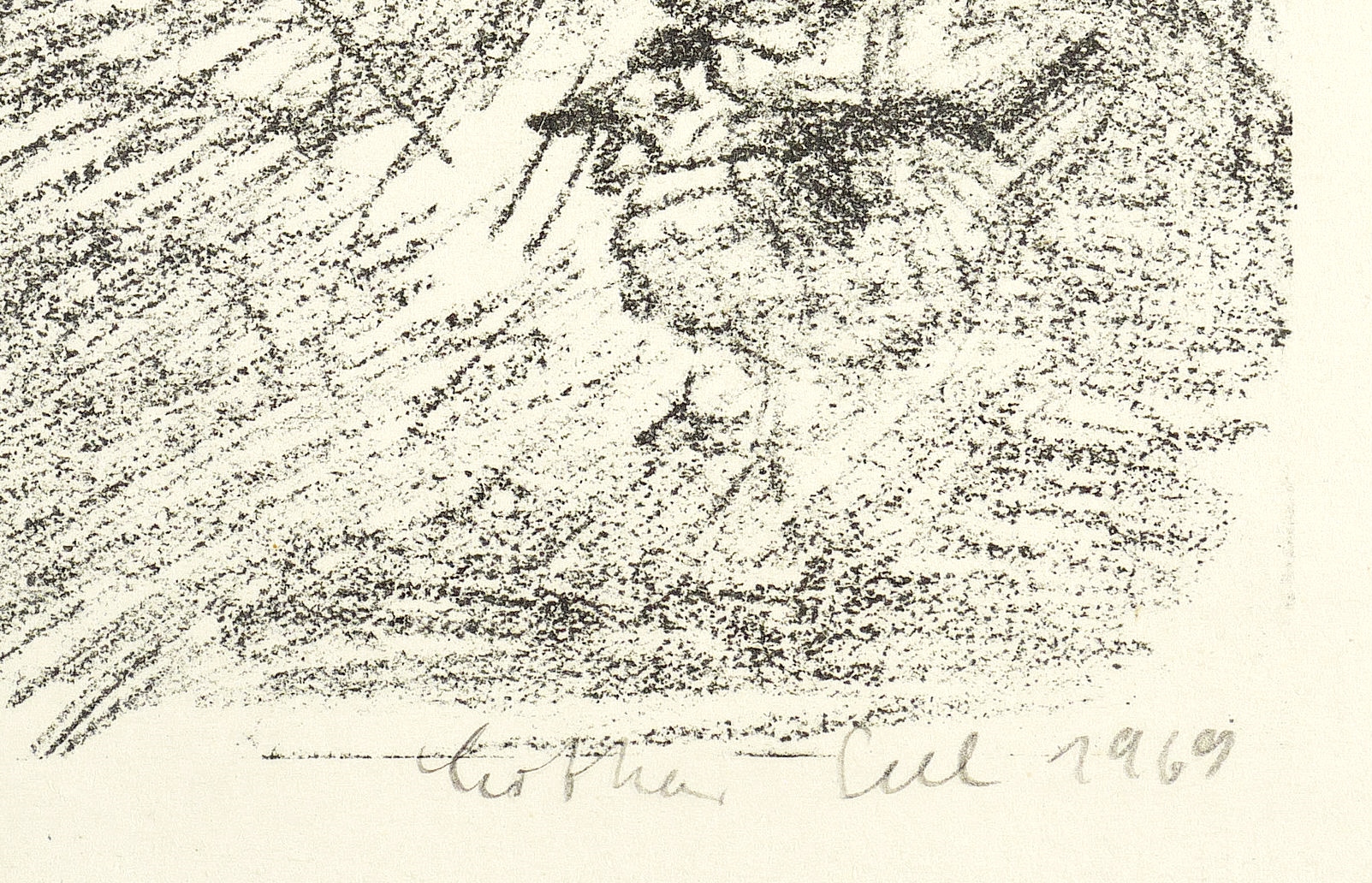 1969. Lithografie / Kreidelithografie, in Schwarz, auf festem hellgelbem Papier. – Originale Künstlergrafik, von Lothar Sell. – 30,6 x 41,3 cm (Darstellung), 38 x 50 cm (Blatt).