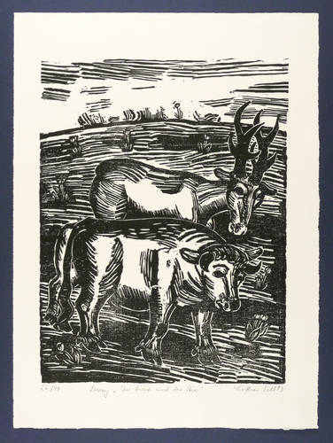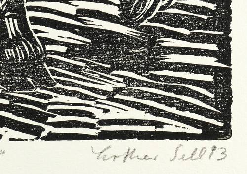 1993. Holzschnitt, auf Büttenpapier. – Originale Künstlergrafik, von Lothar Sell. – Auflage Exemplar Nr. 26/99. – 42,0 x 31,9 cm (Darstellung / Druckstock), 53 x 40 cm (Blatt).