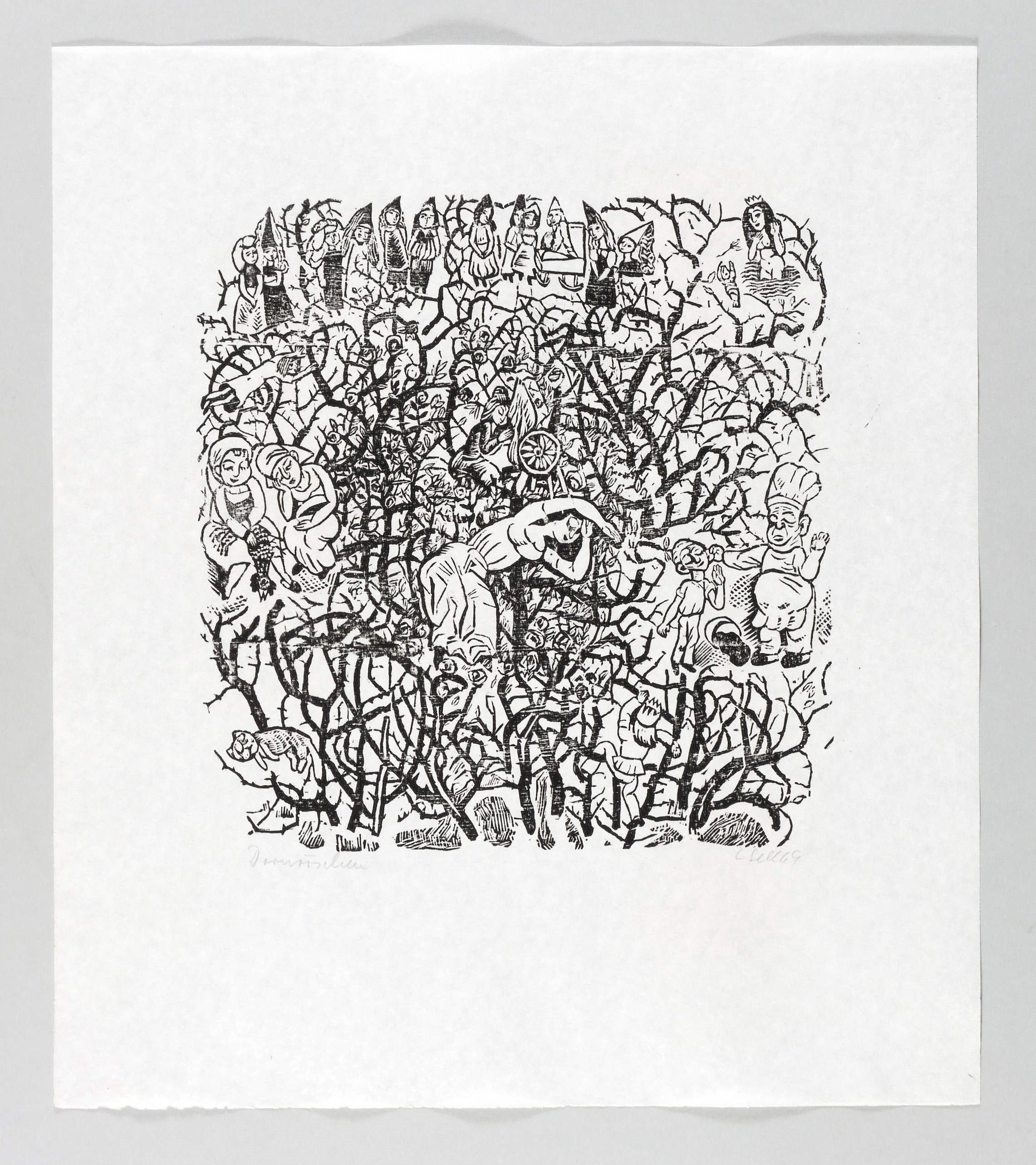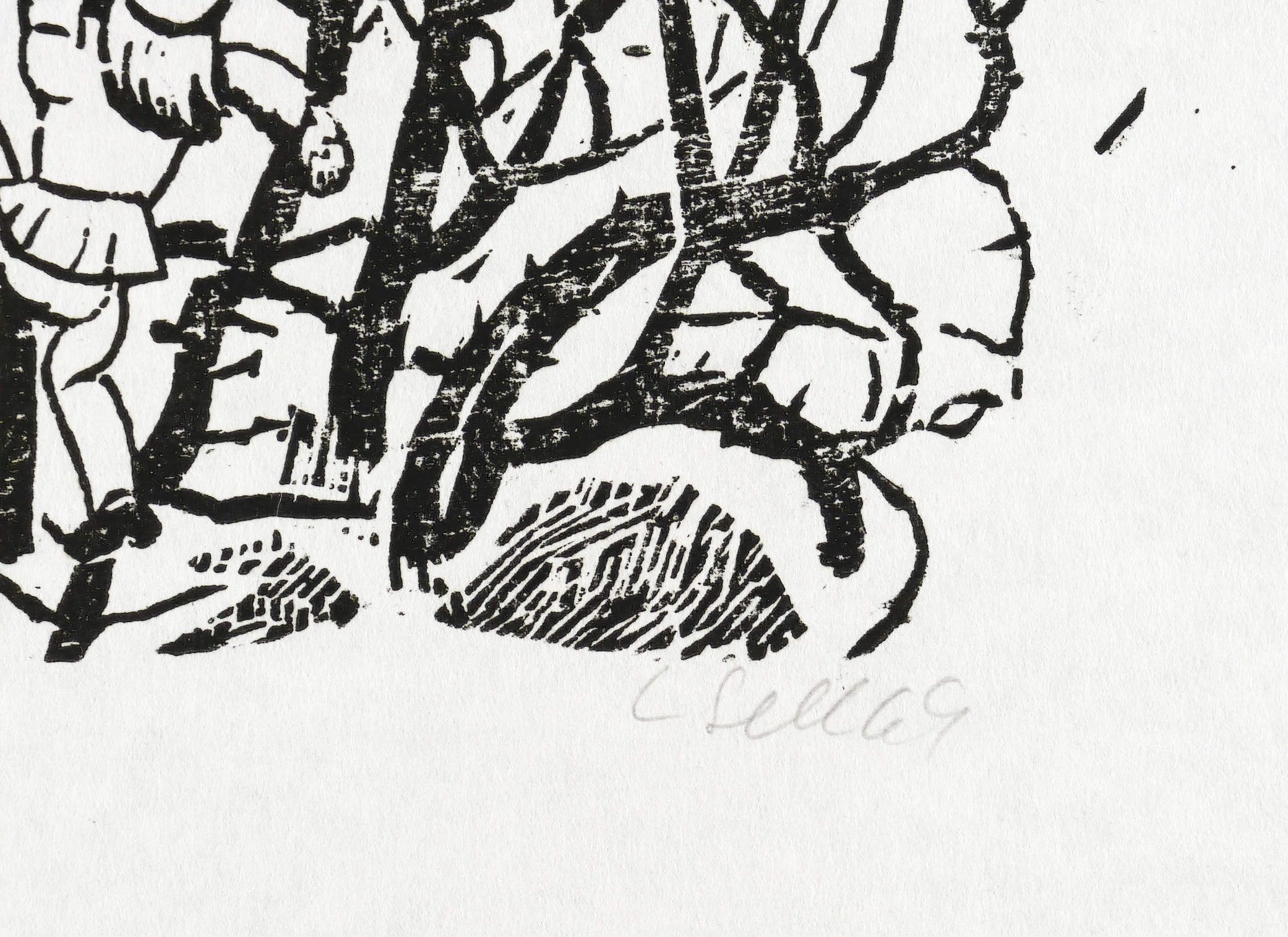 1969. Holzschnitt, in Schwarz, auf rauem weißem Japan-Imitat. – Originale Künstlergrafik, von Lothar Sell. – Auflage Exemplar Nr. 84/110. – 31,0 x 30,0 cm (Darstellung / Druckstock), 50 x 44 cm (Blatt).