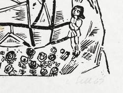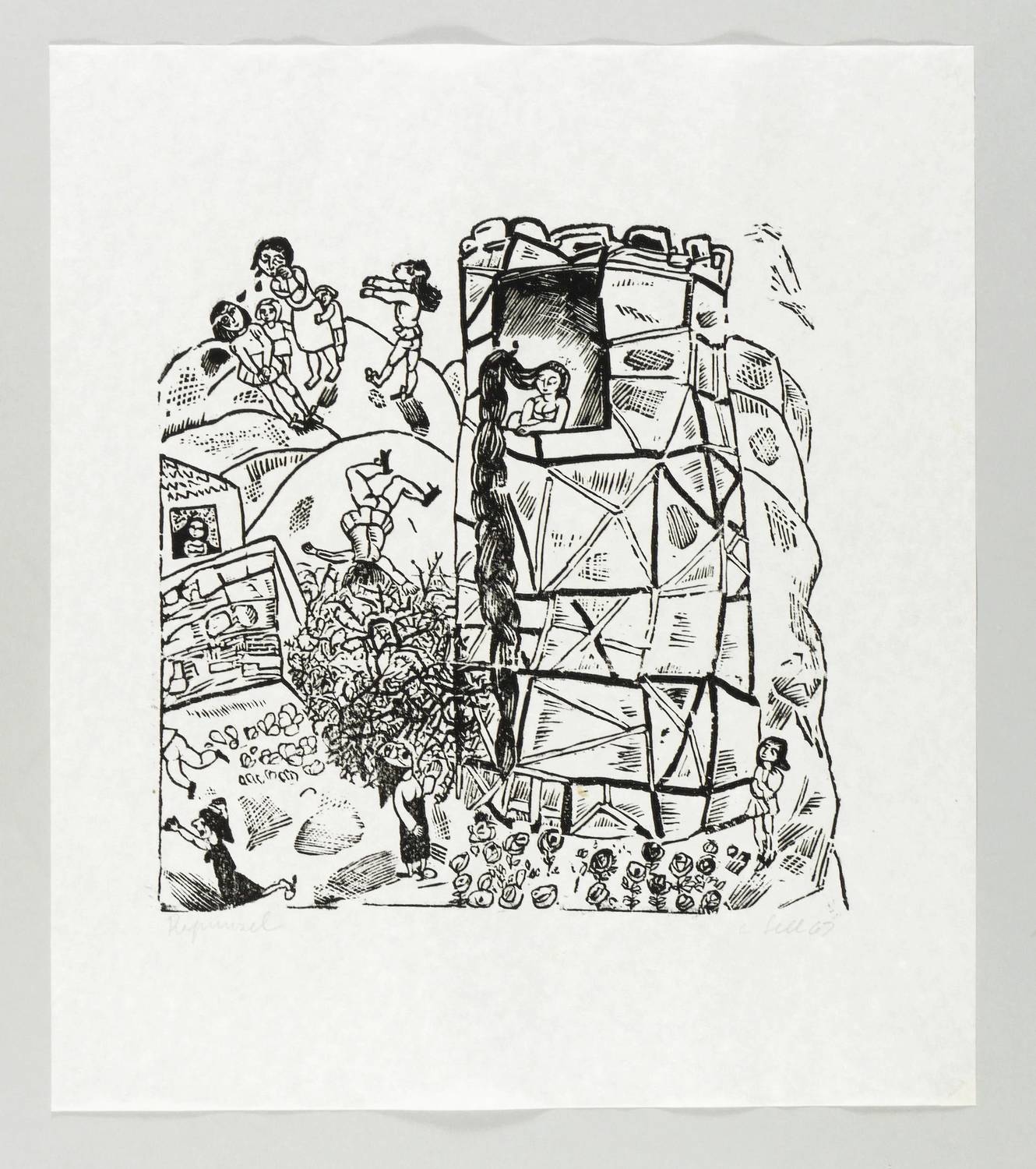 Aus: Lothar Sell, Grimms Märchen. 13. Druck der Kabinettpresse (Berlin: Kabinettpresse 1969). – Rechts unten in Bleistift signiert und datiert: ″L. Sell 69″. Links Titel. – Sehr gut erhalten. Schönes Exemplar.