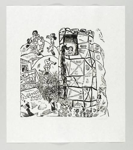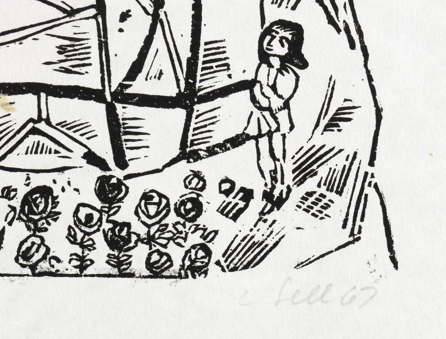 1969. Holzschnitt, in Schwarz, auf rauem weißem Similijapan. – Originale Künstlergrafik, von Lothar Sell. – Auflage Exemplar Nr. 84/110. – 32,7 x 32,6 cm (Darstellung / Druckstock), 51 x 44 cm (Blatt).
