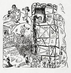 Lothar Sell (1939 Teuenbrietzen - 2009 Meißen). Deutscher Grafiker, Illustrator und Keramiker. 1957-63 Studium an der Hochschule für Bildende Künste Dresden (HfBK), bei Hans Theo Richter und Max Schwimmer. 1966-69 Meisterschüler an der Akademie der Künste Berlin (AdK). 1974-88 Lehrauftrag an der Burg Giebichenstein Hochschule für Kunst und Design in Halle. Mitglied im Verband Bildender Künstler der DDR. Seine Grafiken und Plastiken sind oft geprägt von einem humorigen "bäuerlichen" Charakter. Stilistisch dominiert deshalb eine oft derbe, zumeist auch naive Anmutung. 1976 Illustrationen zu Erwin Strittmatters "Ochsenkutscher". Die Leibesfülle, typisch für Sells Darstellung des menschlichen Körpers, charakterisiert u.a. die Keramiken des Brunnen im Meißner Zollhof.