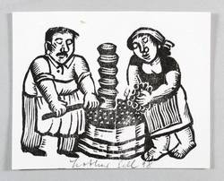 Sell, Lothar. – „Mann und Frau an der Weinpresse”.