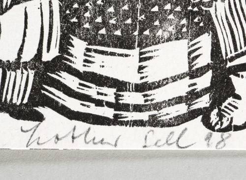 1998. Holzschnitt, in Schwarz, auf weißem Karton. – Originale Künstlergrafik, von Lothar Sell. – 9,4 x 12,6 cm (Darstellung), 11,5 x 14,5 cm (Blatt).