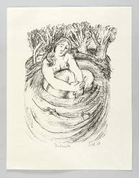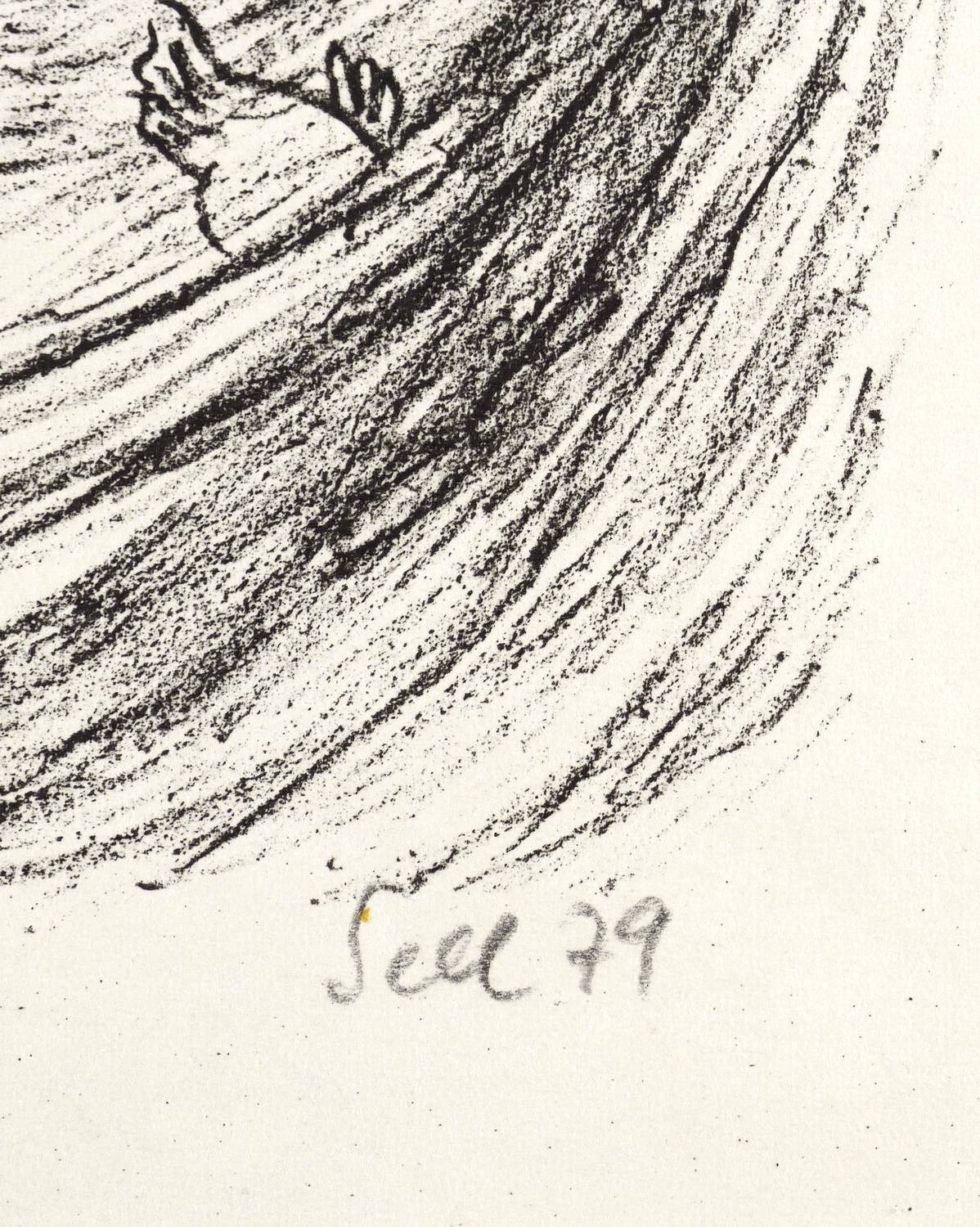 1979. Lithografie / Kreidelithografie, in Schwarz, auf glattem hellgelbem Karton. – Von Lothar Sell. – 22,4 x 17,2 cm (Darstellung / Druckbild), 30 x 23 cm (Blatt).
