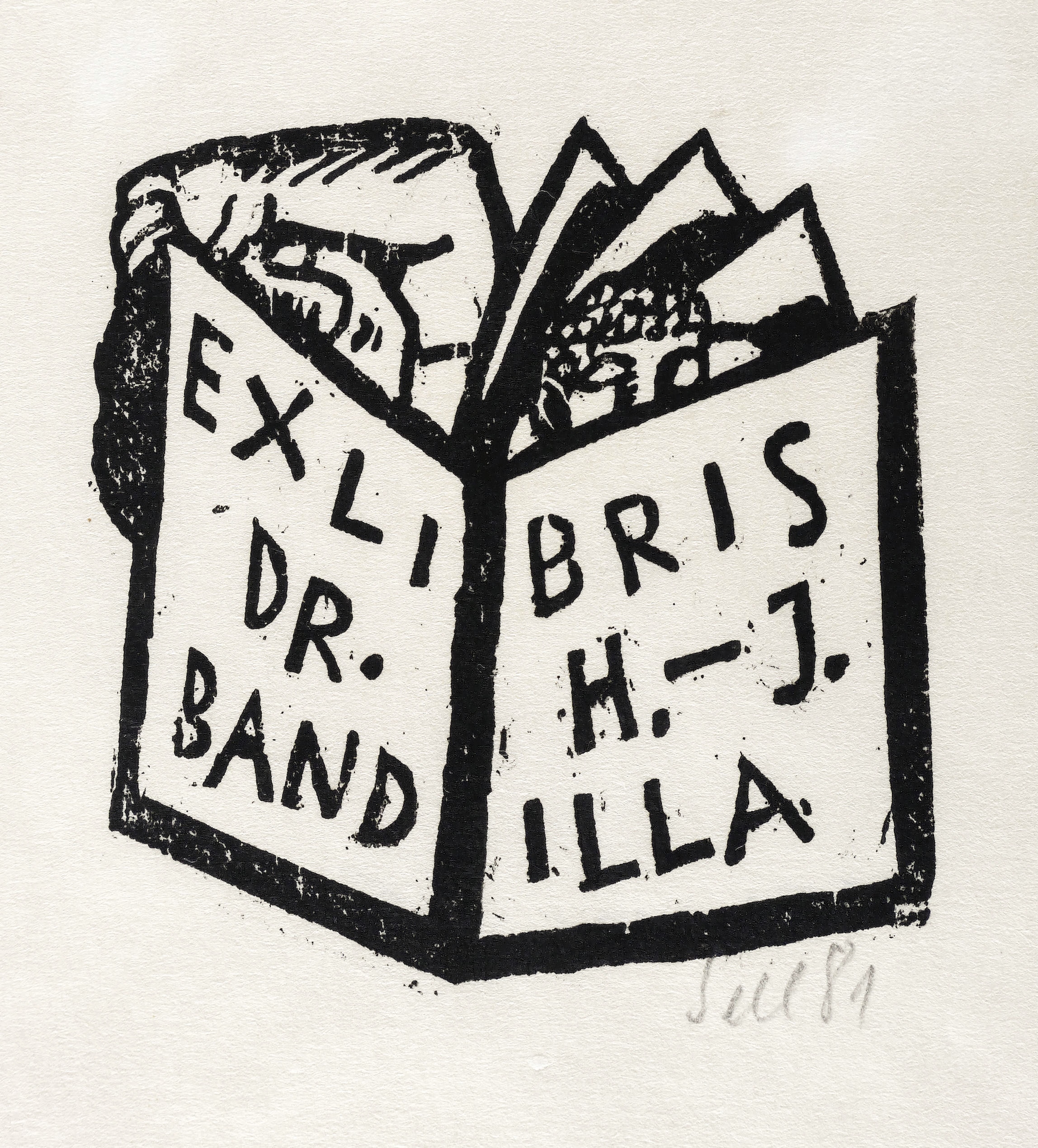 Unten rechts in Bleistift signiert und datiert: ″Sell 81″. In der Darstellung Inschrift: ″EXLIBRIS DR. H.-J. BANDILLA″. – Montagestelle rechts oben rückseitig etwas ausgedünnt. Guter Zustand.