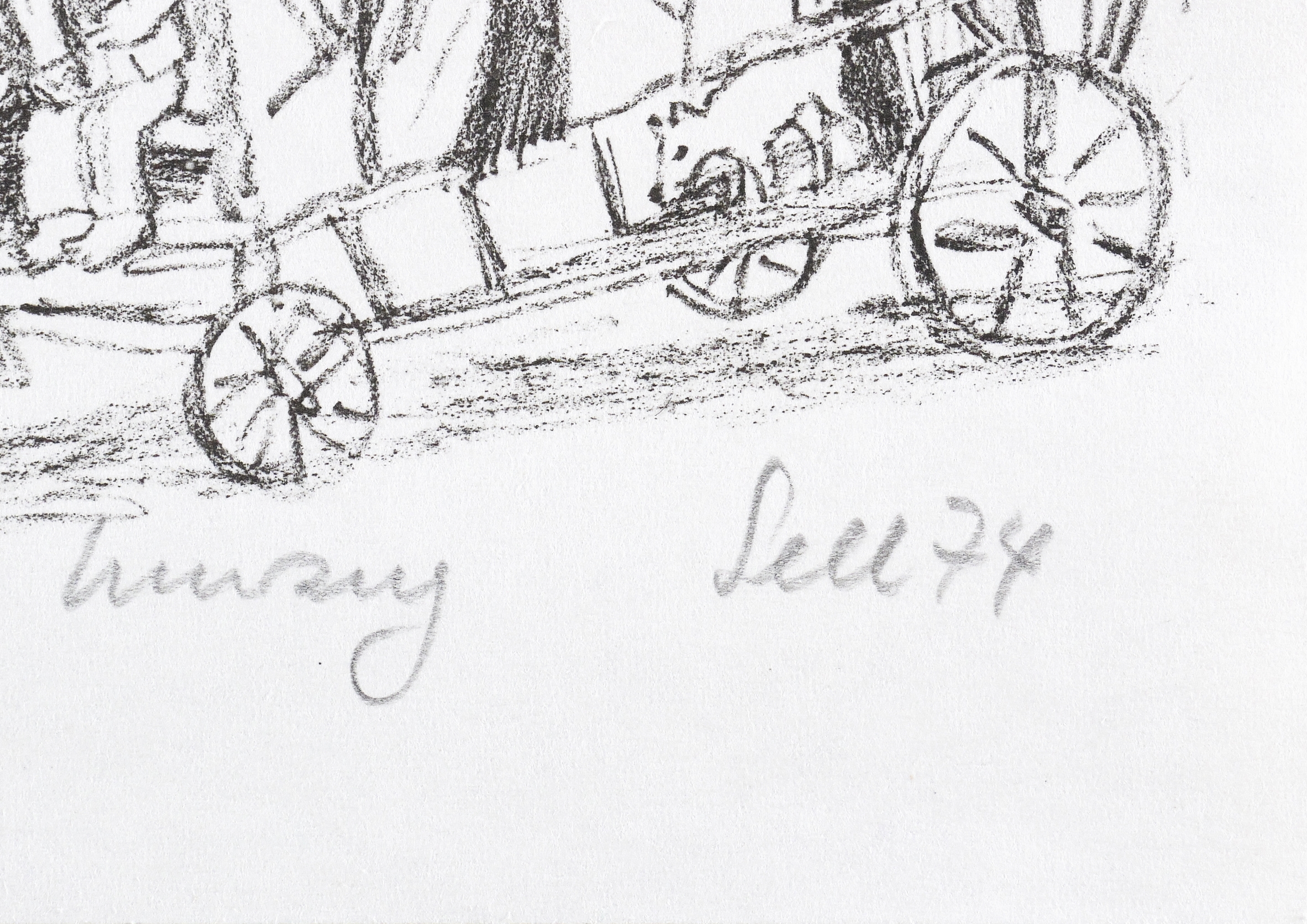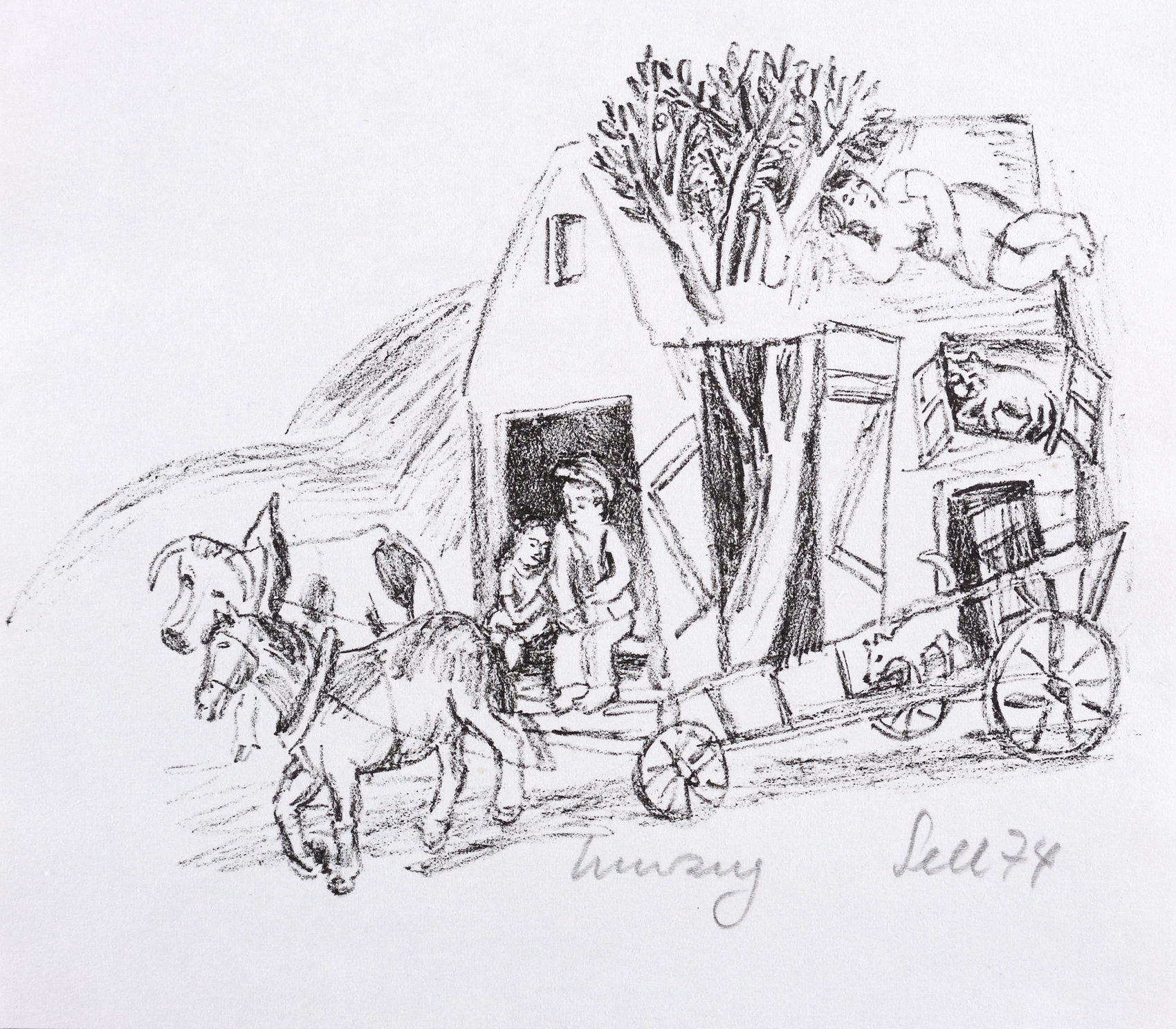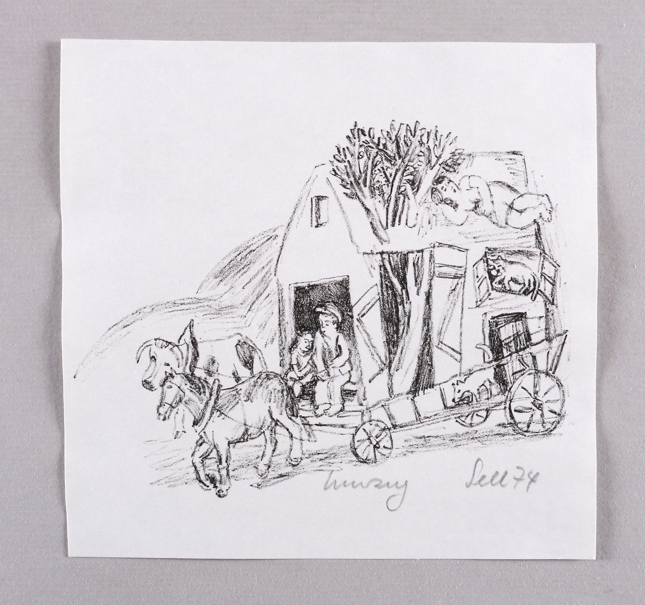 Rechts unten in Bleistift signiert und datiert: ″Sell 74″. Mittig Titel: ″Umzug″. – Sehr guter Zustand.