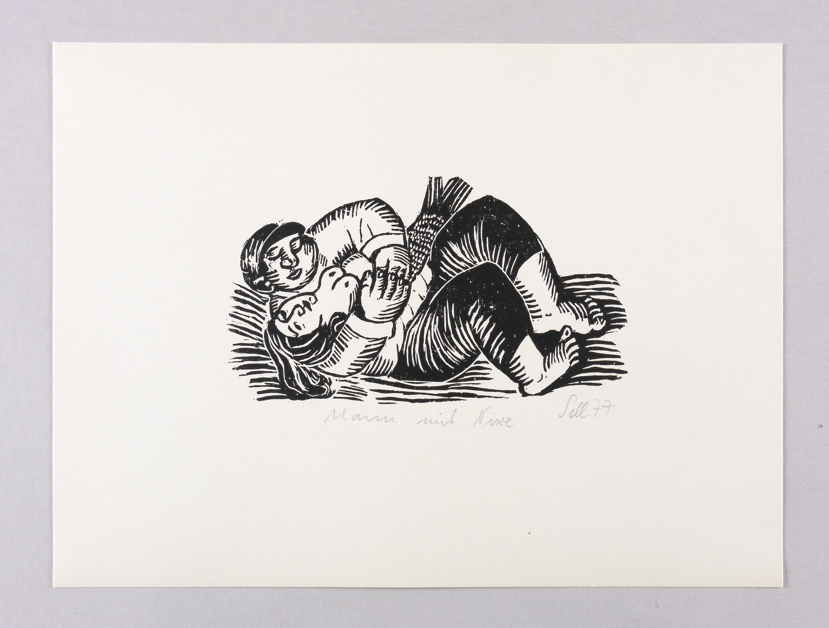 Rechts unten in Bleistift signiert und datiert: ″Sell 77″. Links Titel: ″Mann mit Nixe″. – Sehr guter Zustand.