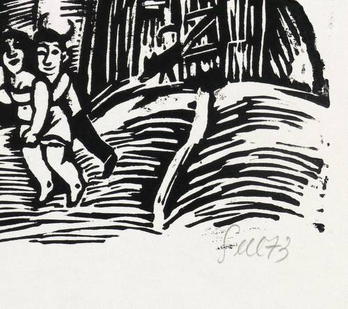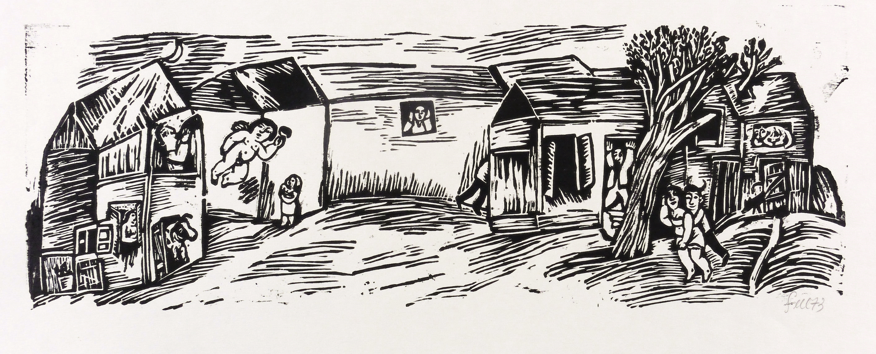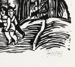 1973. Holzschnitt, in Schwarz, auf hellchamios Velin. – Originale Künstlergrafik, von Lothar Sell. – 14,5 x 41,6 cm (Darstellung / Druckstock), 21 x 49 cm (Blatt).