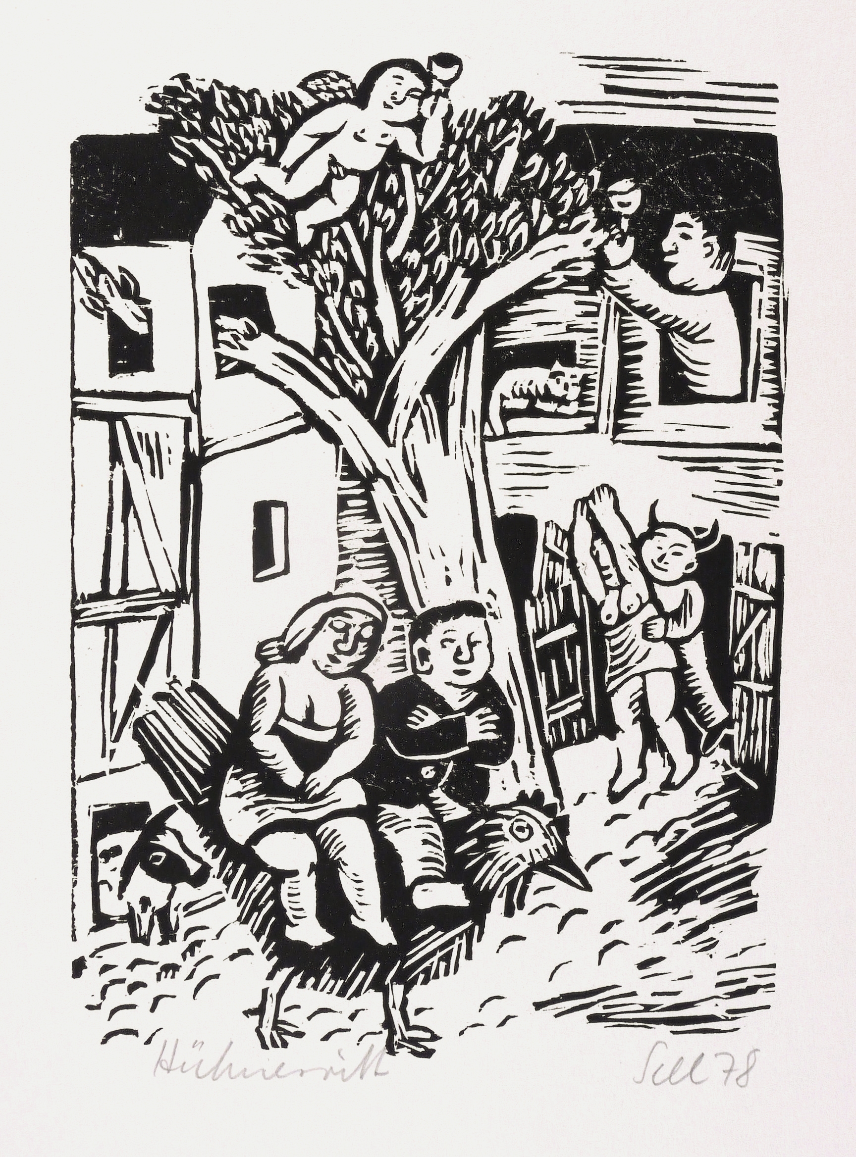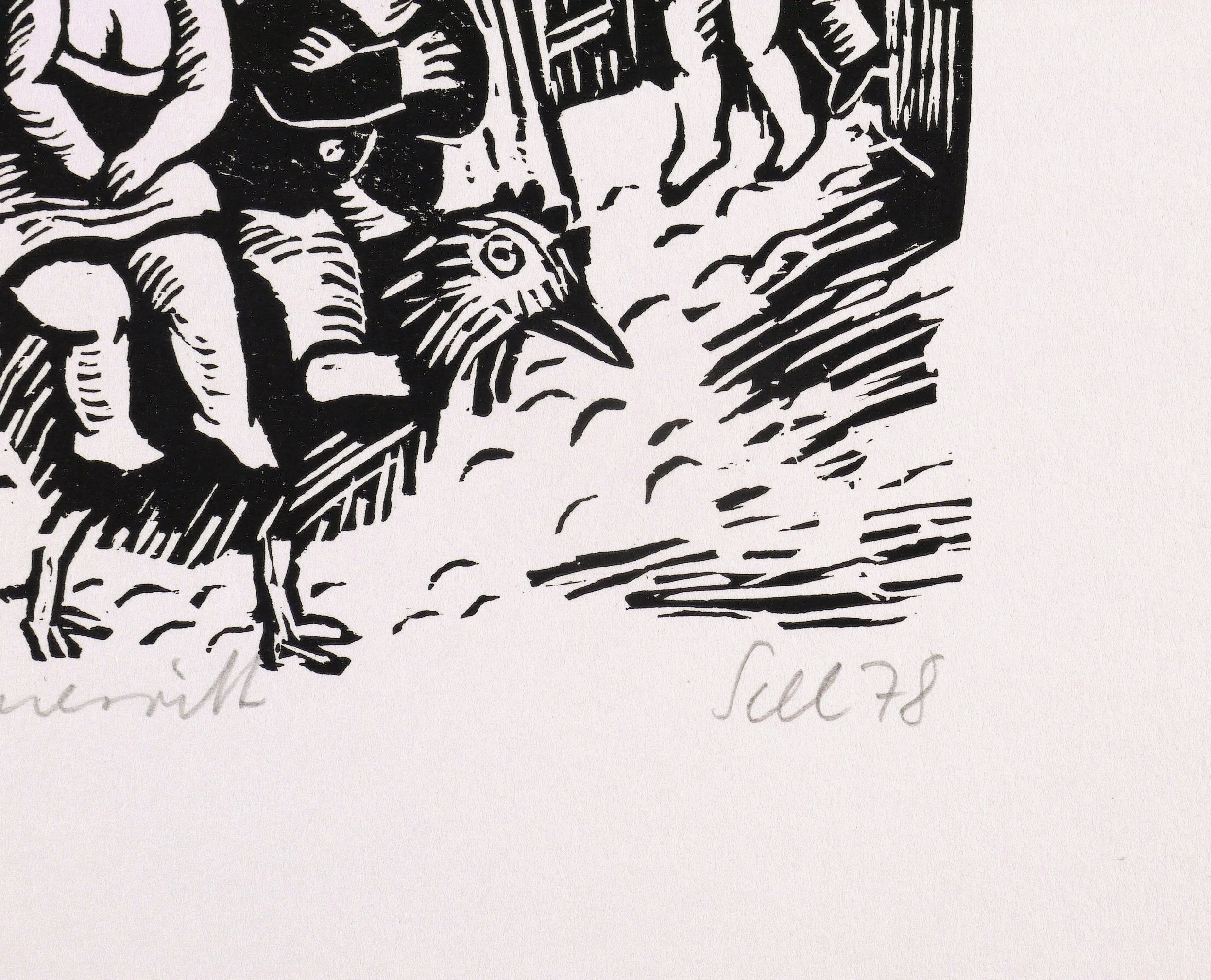 Unten rechts in Bleistift signiert und datiert: ″Sell 78″. Links Titel: ″Hühnerritt″. – Sehr guter Zustand.