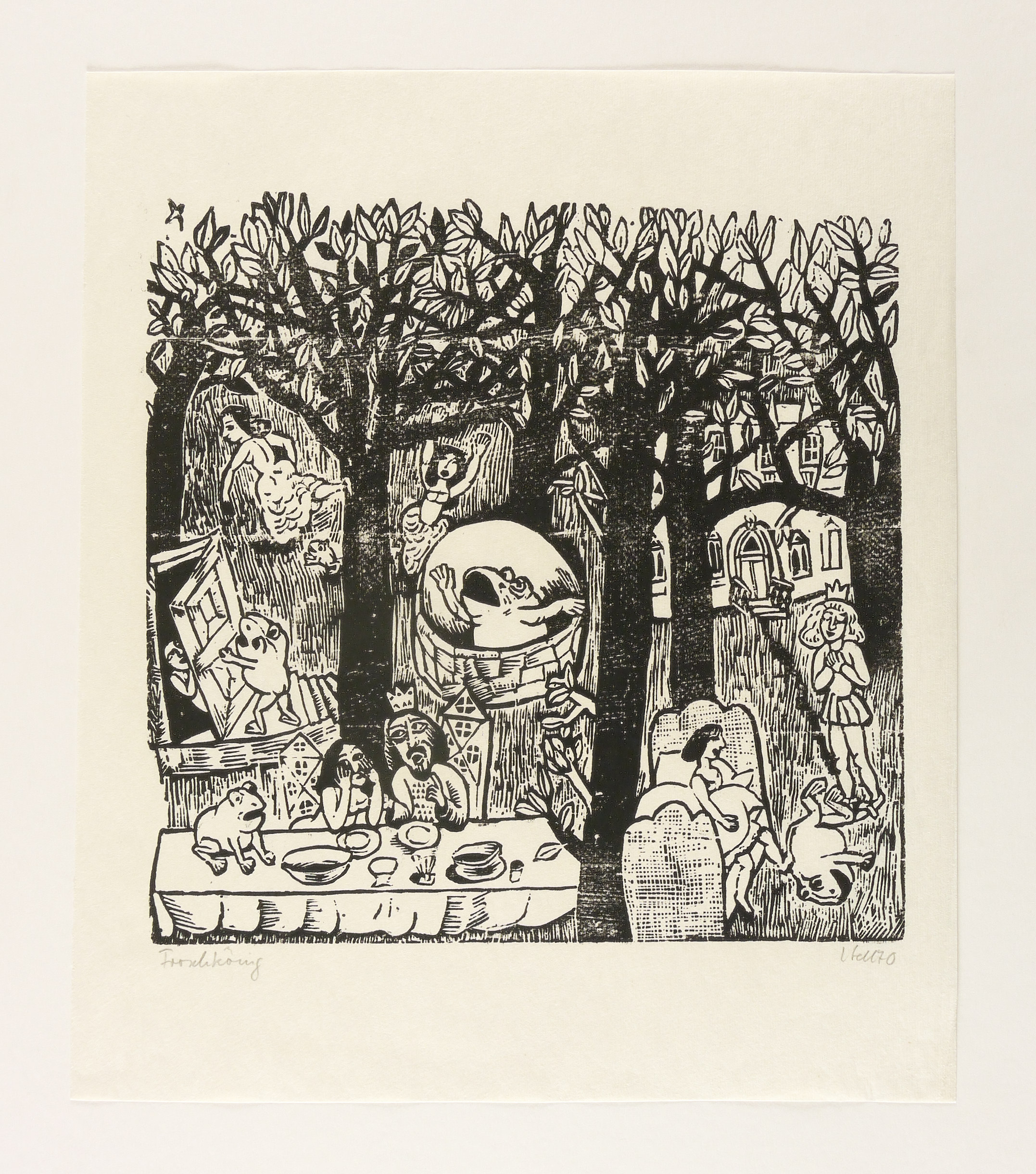 Rechts unten in Bleistift signiert und datiert: ″L. Sell 70″. Links Titel: ″Froschkönig″. – Sehr guter Zustand.