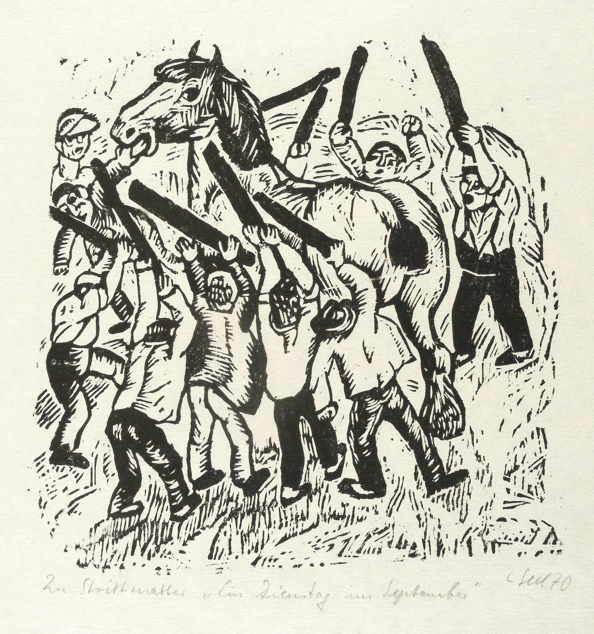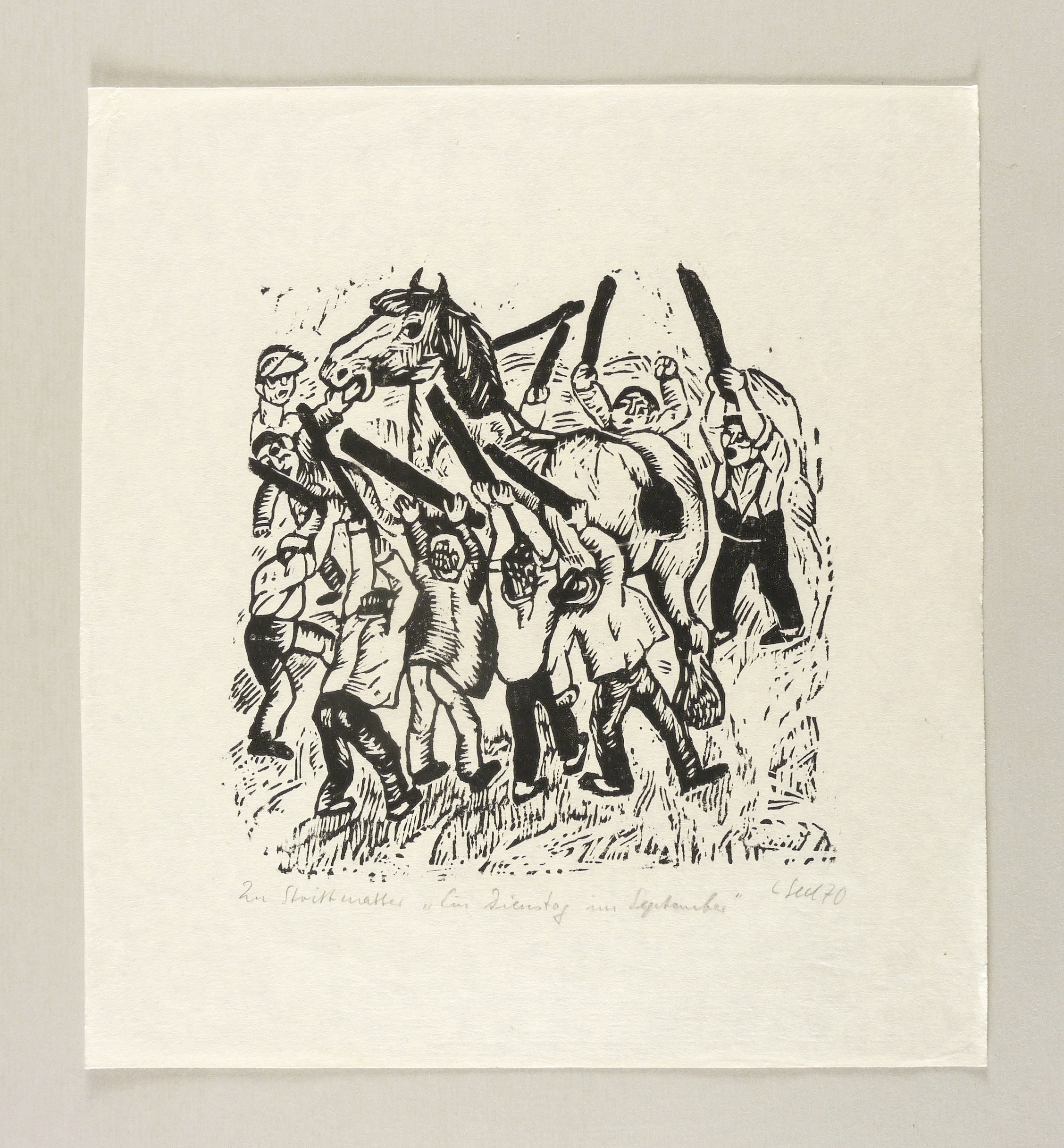 Rechts unten in Bleistift signiert und datiert. ″L. Sell 70″. Links bezeichnet: ″Zu Strittmatter 'Ein Dienstag im September'″. – Blattkanten leicht bestoßen. Guter Zustand.