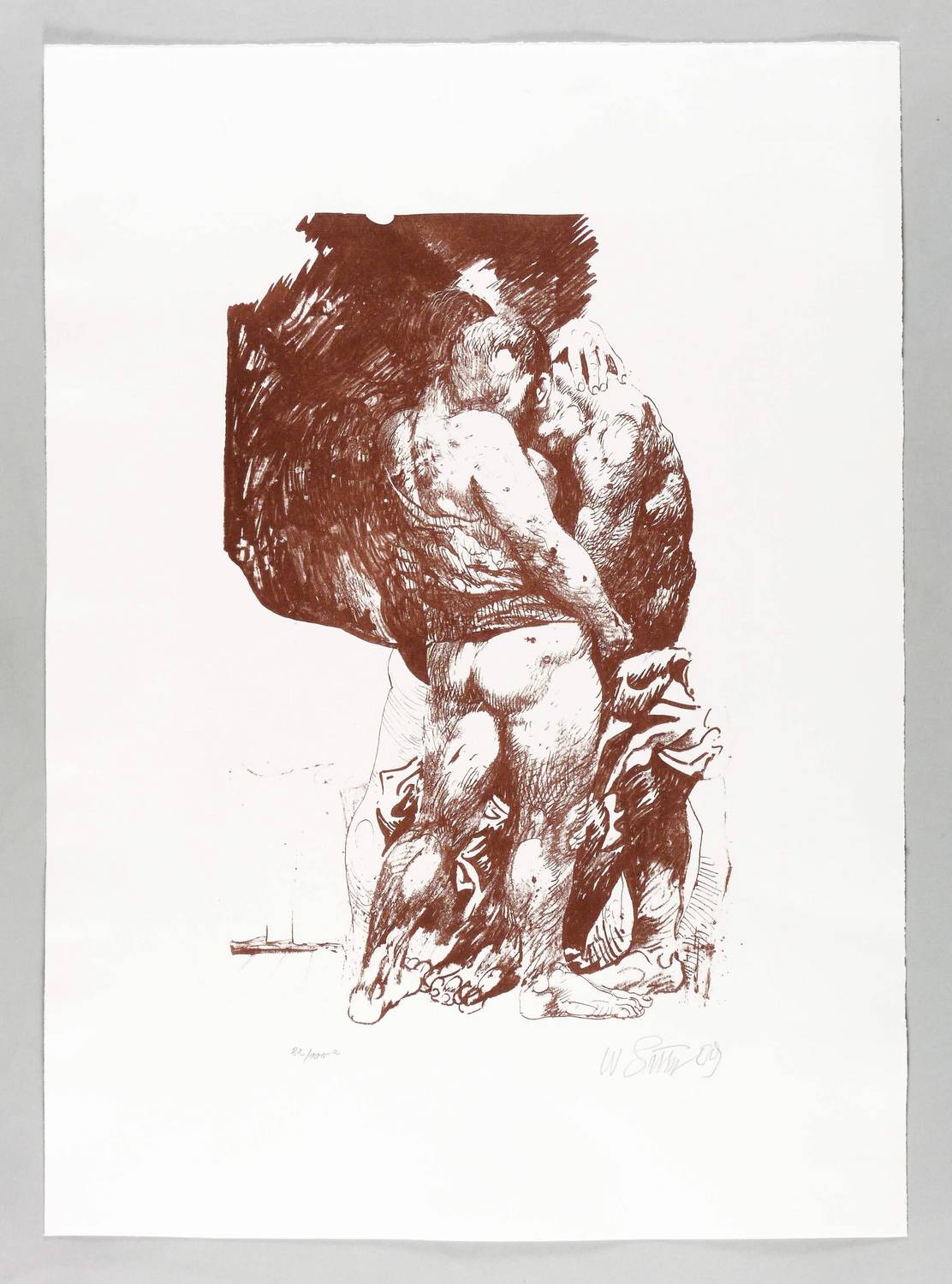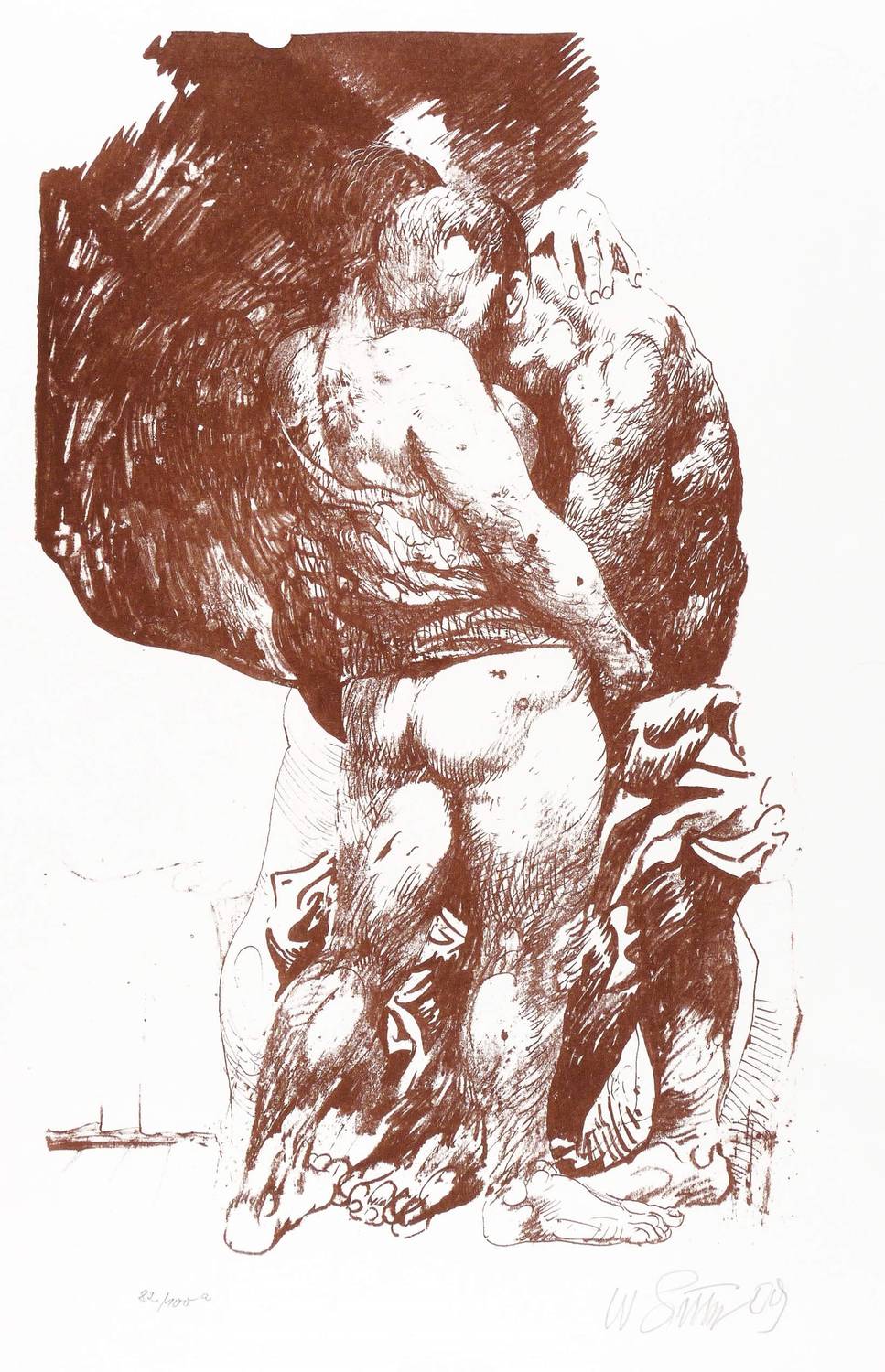 1978/2009. Lithografie / Pinsel- und Kreidelithografie, in Rotbraun, auf weißem Velinkarton. – Originale Künstlergrafik, von Willi Sitte. – Auflage Exemplar Nr. 82/100. – 47,3 x 30,2 cm (Darstellung / Stein), 70 x 50 cm (Blatt).
