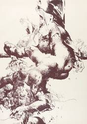 1970. Originaloffset / Feder & Pinsel, in Violettbraun. – Originale Künstlergrafik, von Willi Sitte. – Auflage 600 Exemplare. – 60 x 42 cm (Darstellung / Blatt).