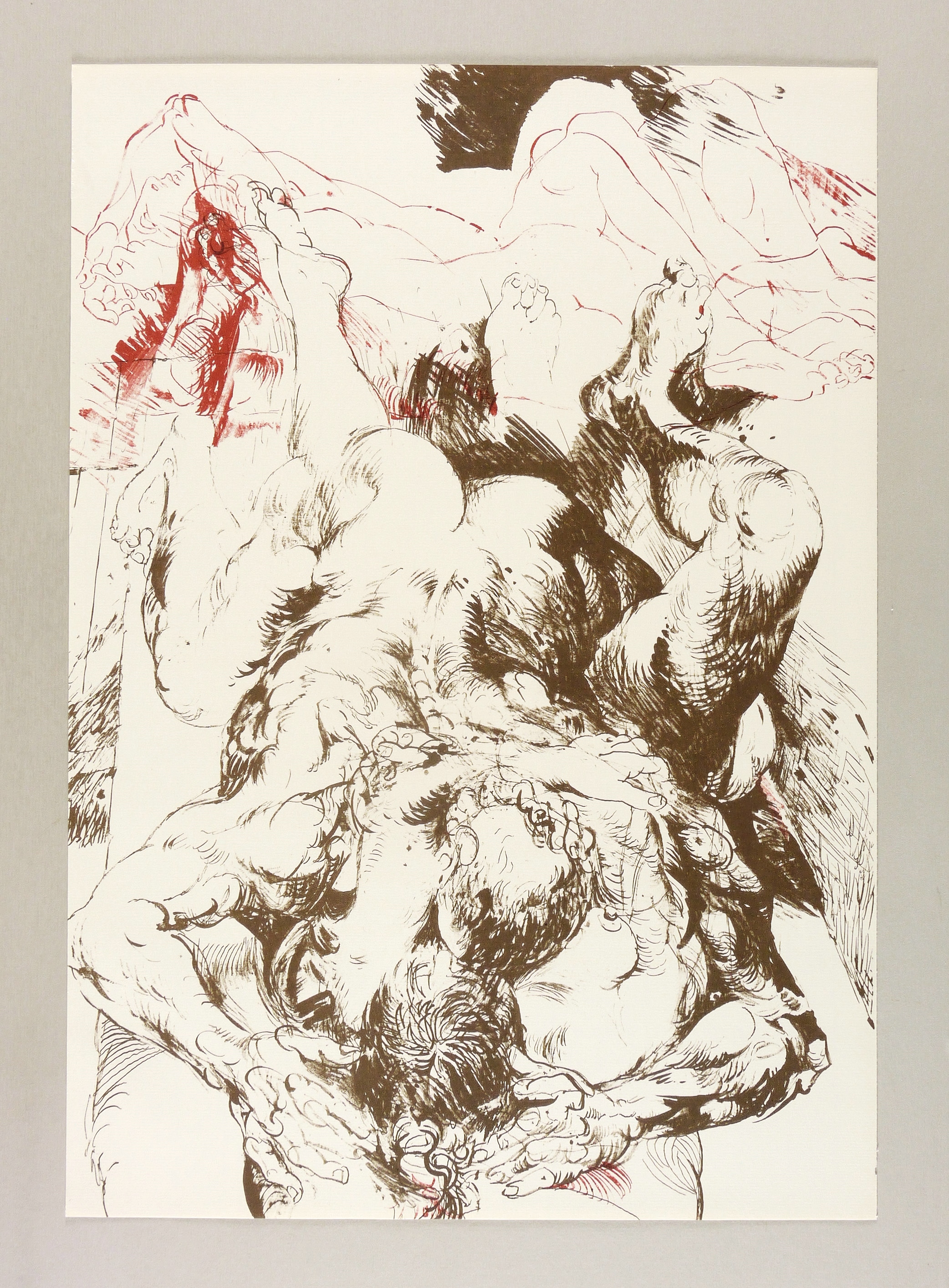 1970. Originaloffset / Feder & Pinsel, in Braun und Rot. – Von Willi Sitte. – Auflage 600 Exemplare. – 60 x 42 cm (Darstellung / Blatt).