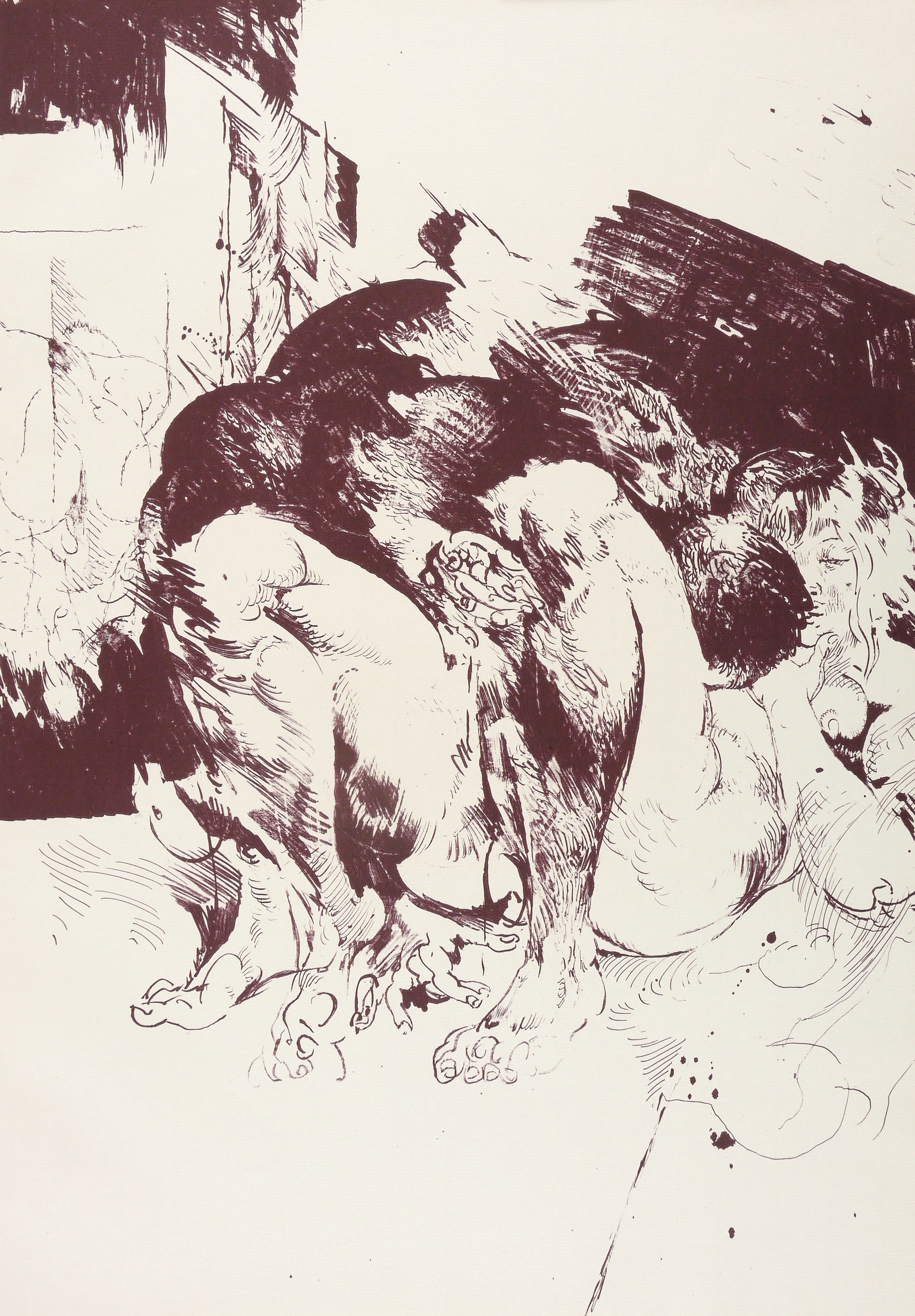 Aus: Willi Sitte, P. Ovidi Nasonis Ars amatoria. Die Liebeskunst (Berlin: Akademie-Verlag 1970). – Originaloffset zur Folge der Ars amatoria (Ovid). – Sehr guter Zustand.