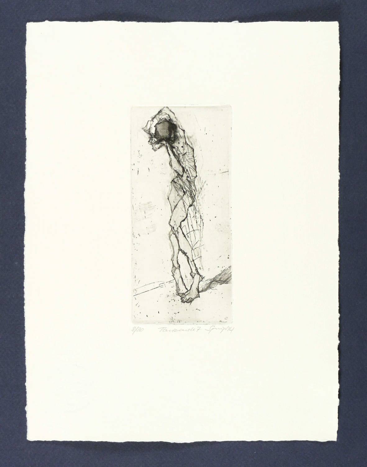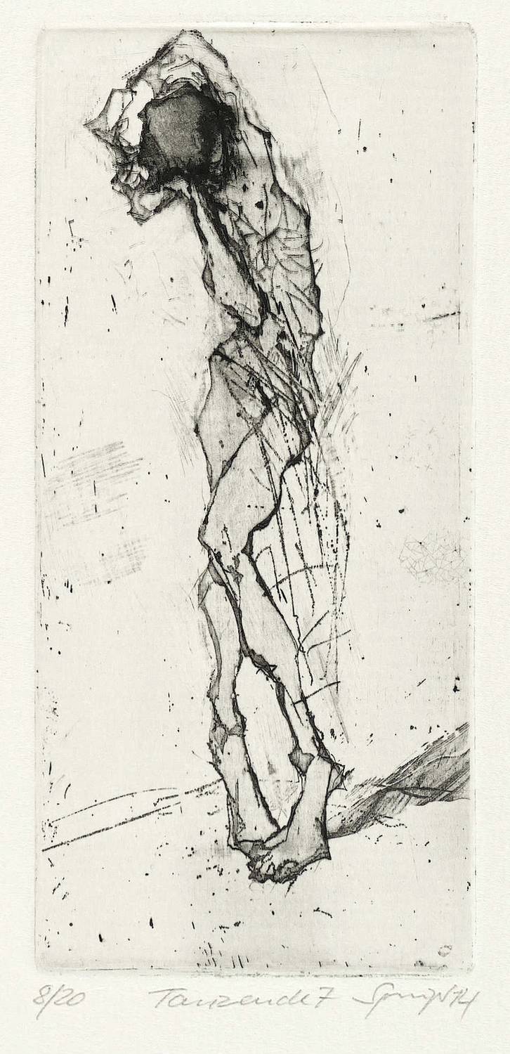 2014. Radierung / Roulette, Aquatinta & Kaltnadel, auf Hahnemühle-Bütten. – Originale Künstlergrafik, von Reinhard Springer. – Auflage Exemplar Nr. 8/20. – 13,9 x 6,4 cm (Darstellung / Platte), 26,5 x 20,0 cm (Blatt).