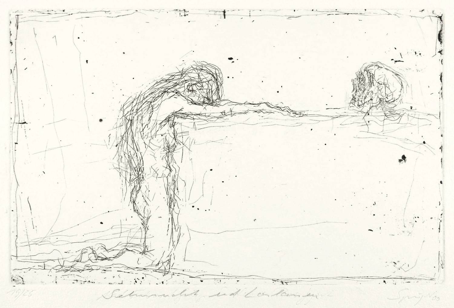 2000. Radierung / Strichätzung & Kaltnadel, auf Büttenpapier. – Originale Künstlergrafik, von Reinhard Springer. – Auflage Exemplar Nr. 19/25. – 18,8 x 29,6 cm (Darstellung / Platte), 26,5 x 39,3 cm (Blatt).