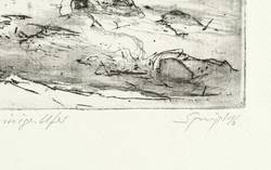 2016. Radierung / Strichätzung, Aquatinta & Kaltnadel, in Schwarz, auf Büttenpapier. – Originale Künstlergrafik, von Reinhard Springer. – Auflage Exemplar Nr. 9/10 I. – 9,8 x 12,4 cm (Darstellung / Platte), 39,2 x 26,2 cm (Blatt).