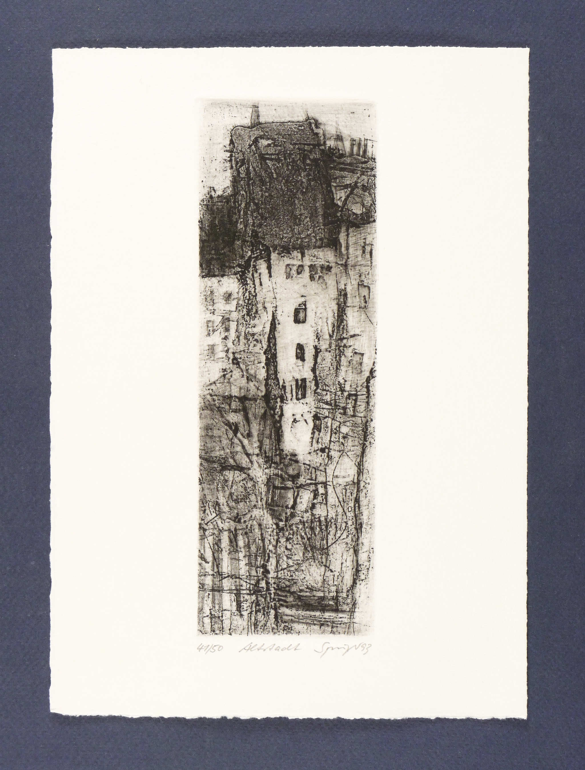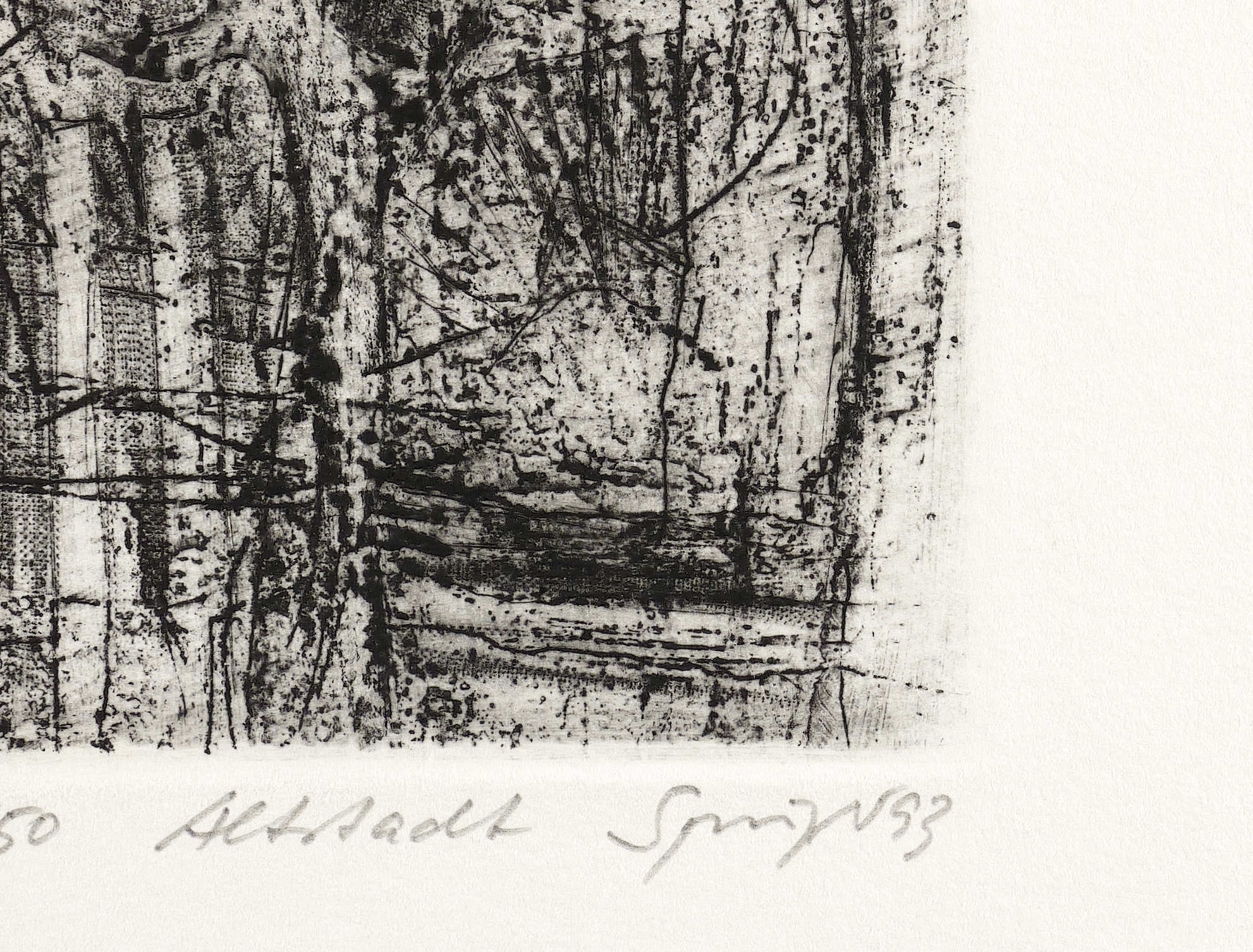 1993. Radierung / Strichätzung, Kaltnadel, Roulette & Reservage, auf Büttenpapier. – Originale Künstlergrafik, von Reinhard Springer. – Auflage Exemplar Nr. 41/50. – 21,5 x 7,2 cm (Darstellung / Platte), 26,5 x 19,0 cm (Blatt).
