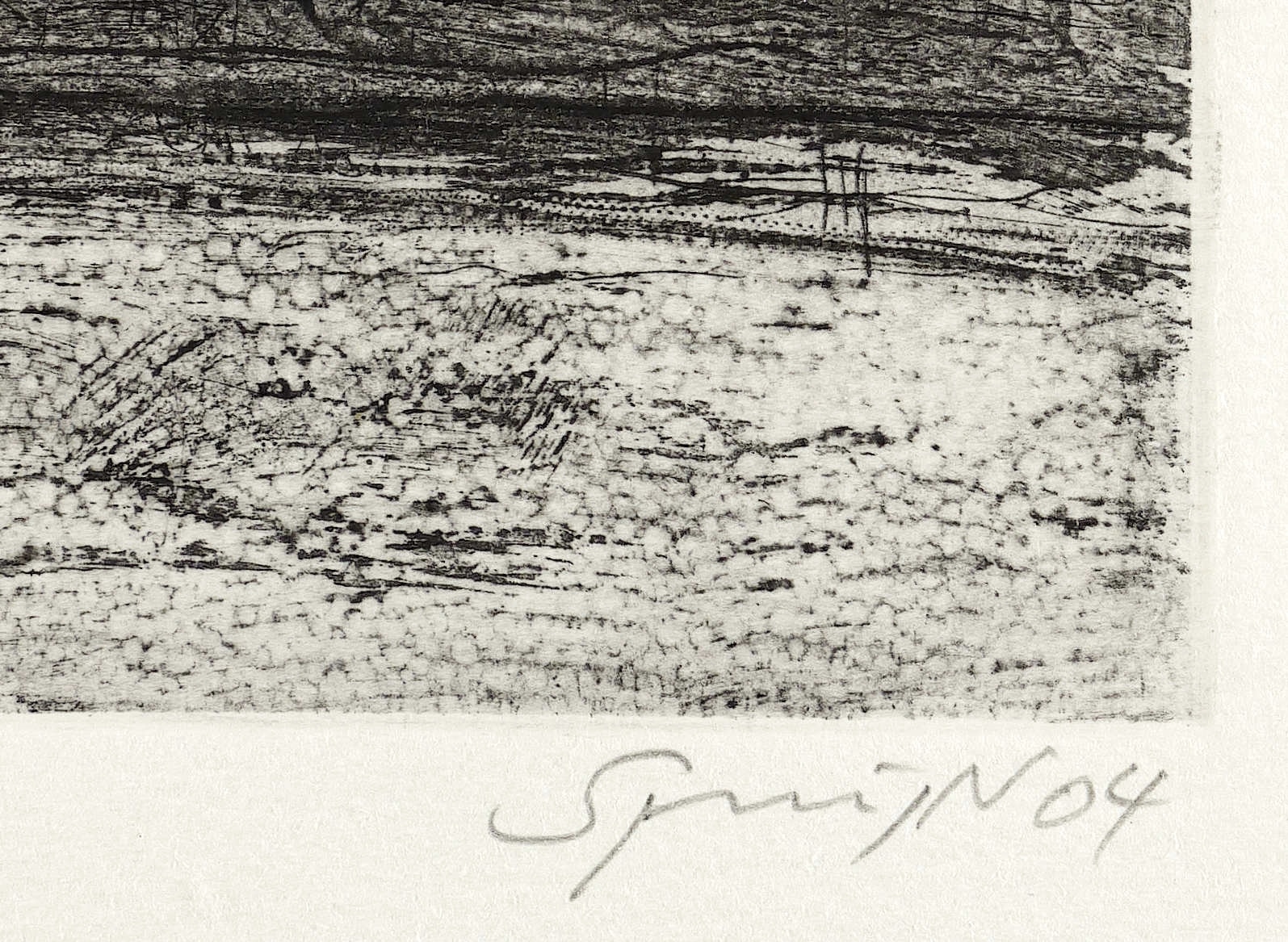 2004. Radierung / Strichätzung, Roulette & Zuckertusche, auf Büttenpapier. – Originale Künstlergrafik, von Reinhard Springer. – Auflage Exemplar Nr. 46/50. – 10,0 x 26,9 cm (Darstellung / Platte), 26,5 x 39,3 cm (Blatt).