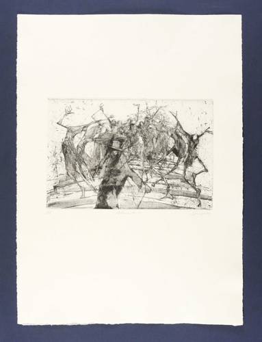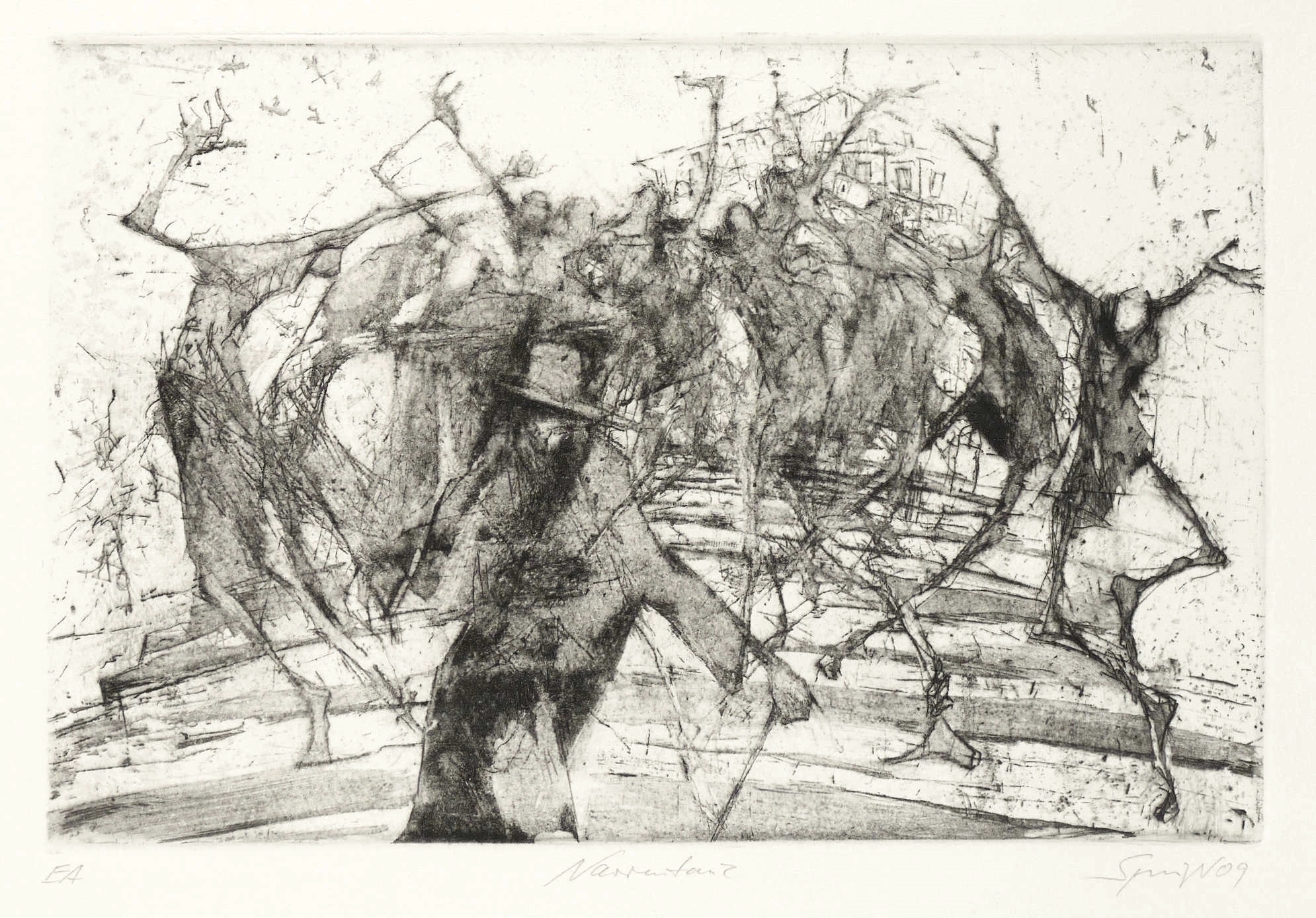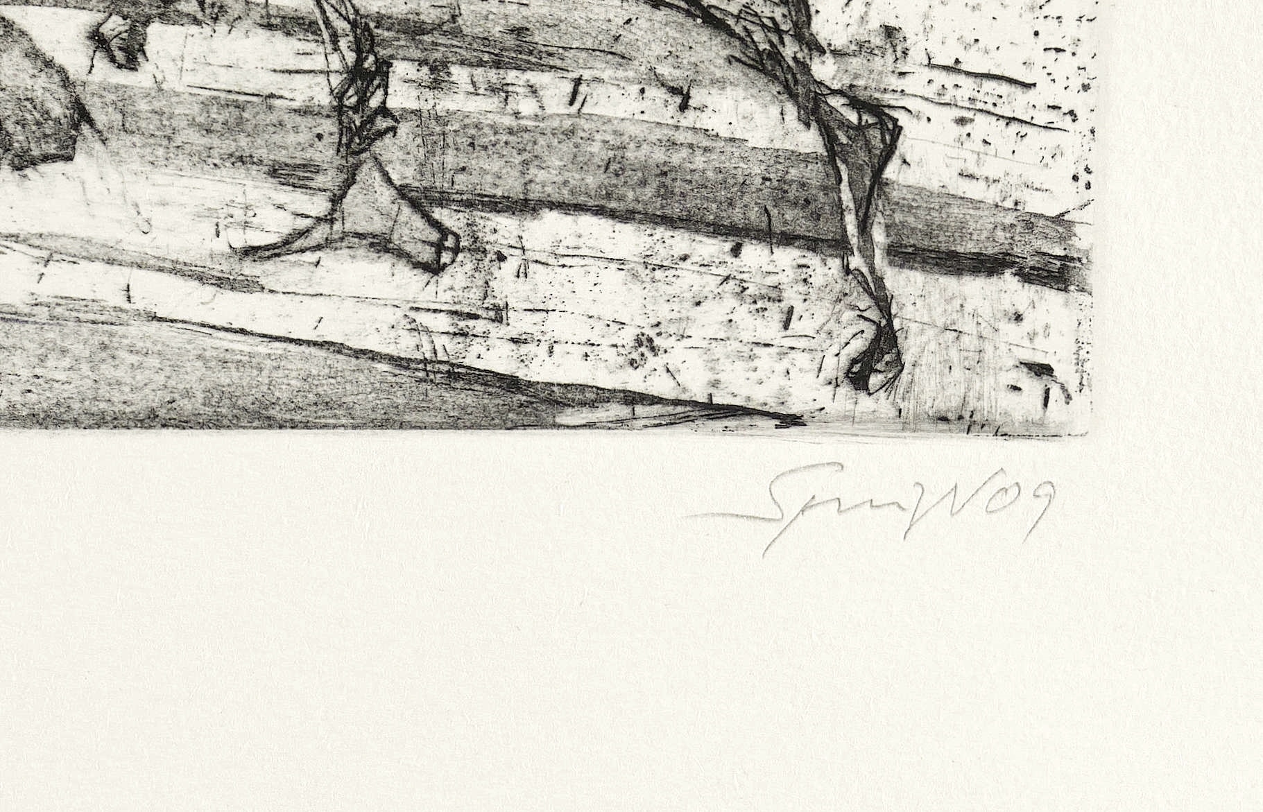 2009. Radierung / Strichätzung, Kaltnadel & Aquatinta, in Schwarz, auf Büttenpapier. – Originale Künstlergrafik, von Reinhard Springer. – Künstlerexemplar e.a.. – 19,2 x 29,2 cm (Darstellung / Platte), 53,5 x 39,5 cm (Blatt).