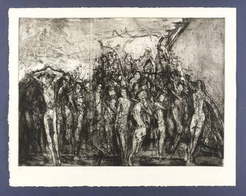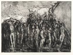 1990. Radierung / Vernis mou, Reservage & Roulette, in Schwarz, auf schwerem hellchamois Bütten. – Originale Künstlergrafik, von Reinhard Springer. – Künstlerexemplar (e.a.). – 35,5 x 49,3 cm (Darstellung / Platte), 43 x 54 cm (Blatt).