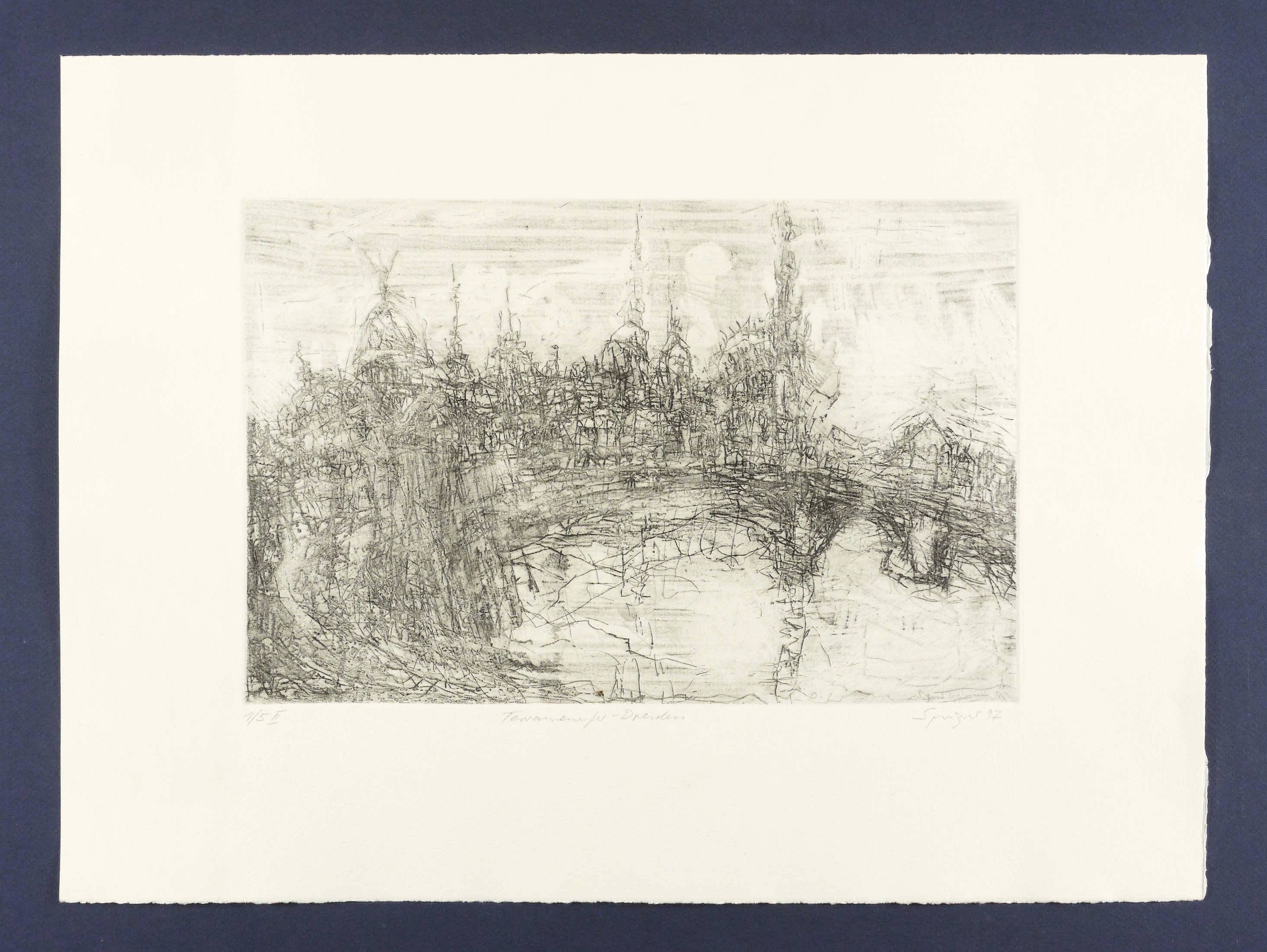 Rechts unten in Bleistift signiert und datiert. Links Auflagenbezeichnung. Mittig Tittel. – Papier im Randbereich außerhalb der Darstellung marginal knickspurig. Insgesamt guter Erhaltungszustand.