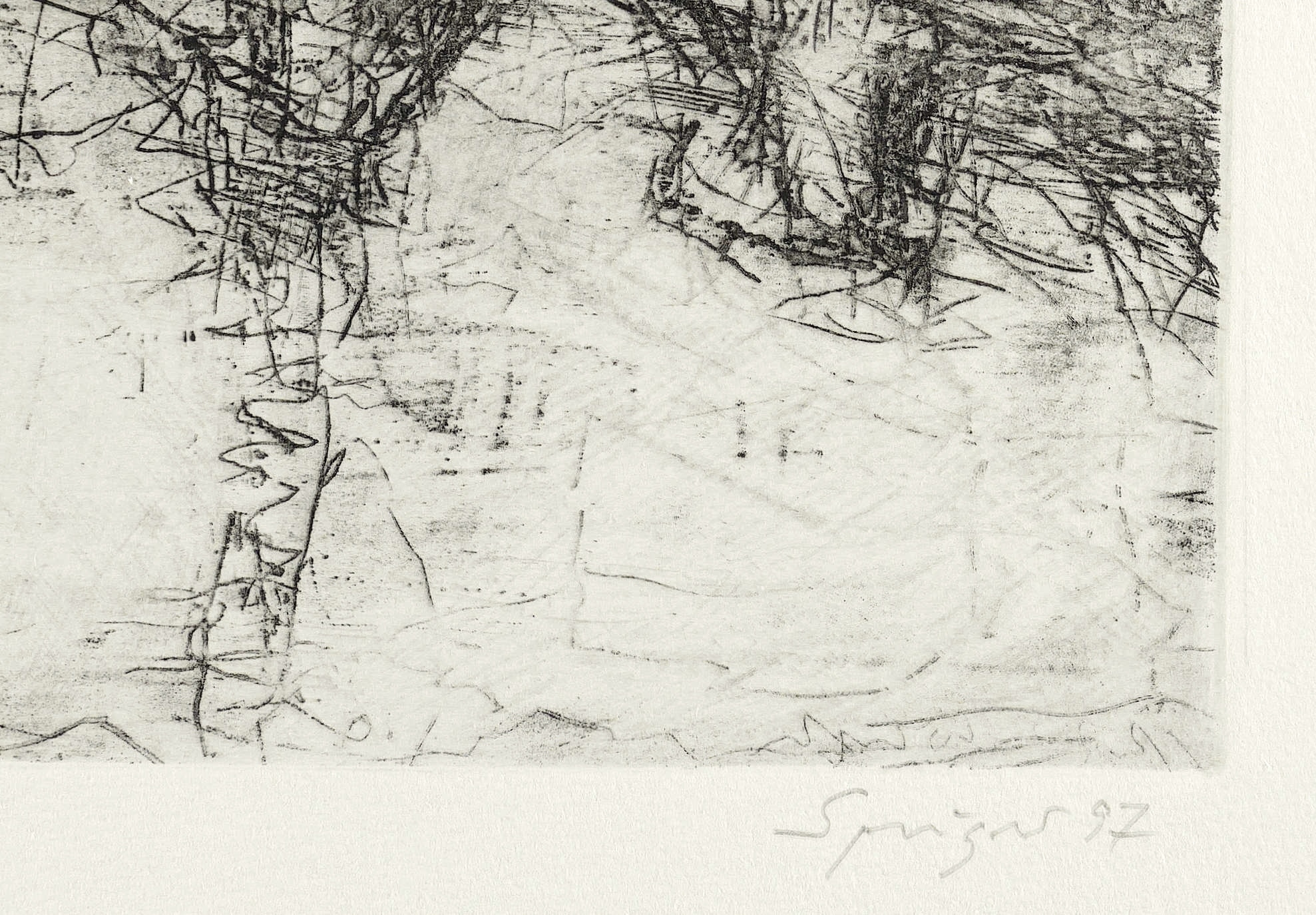 1997. Radierung / Strichätzung, Roulette & Reservage, auf Büttenpapier. – Originale Künstlergrafik, von Reinhard Springer. – Auflage Exemplar Nr. 1/5 II. – 23,4 x 35,6 cm (Darstellung / Platte), 39,5 x 53,0 cm (Blatt).