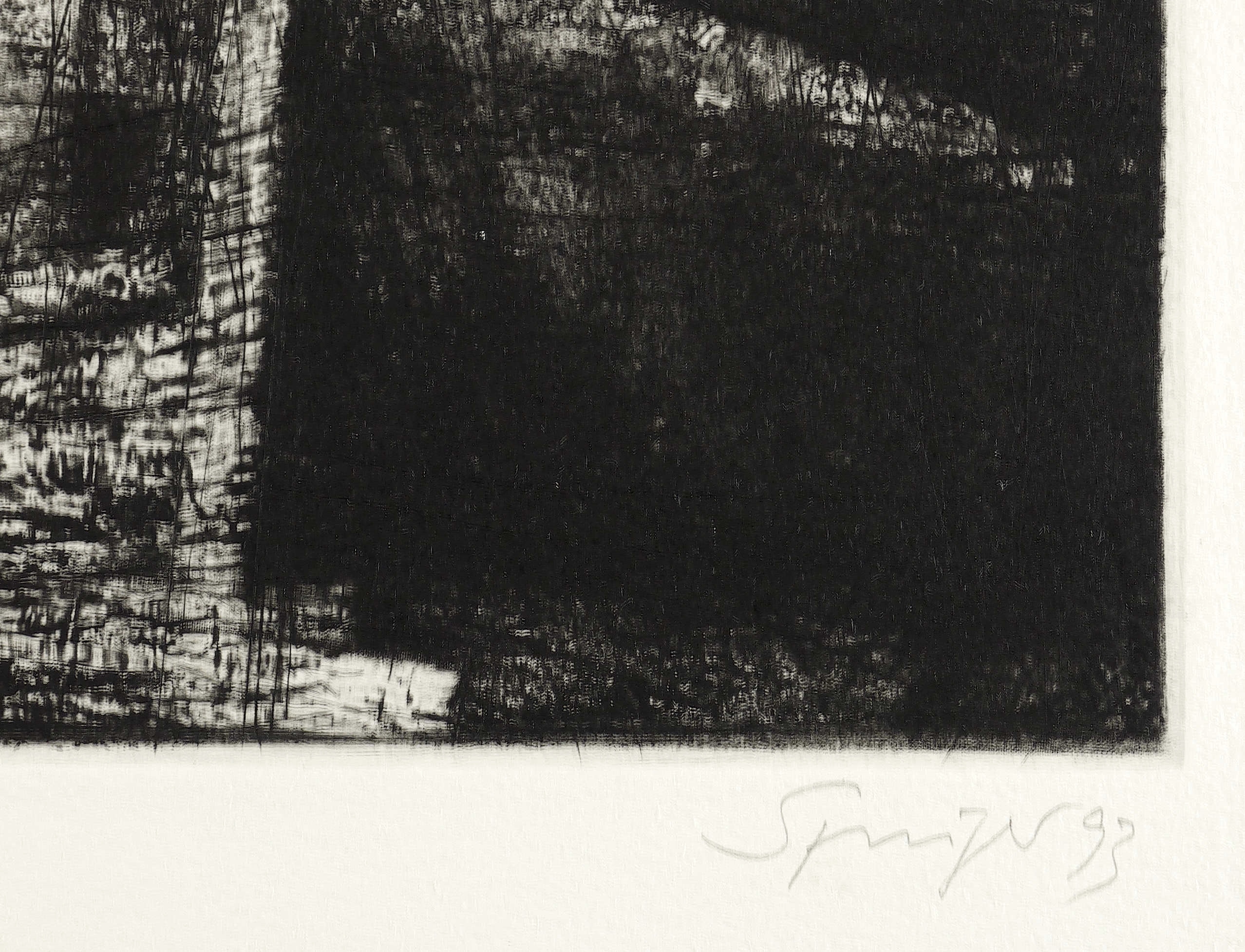 1993. Radierung / Reservage, Strichätzung & Roulette, in Schwarz, auf hellchamois Hahnemühle-Bütten. – Originale Künstlergrafik, von Reinhard Springer. – Auflage Exemplar Nr. 6/10. – 49,0 x 59,0 cm (Darstellung / Platte), 54 x 65 cm (Blatt).