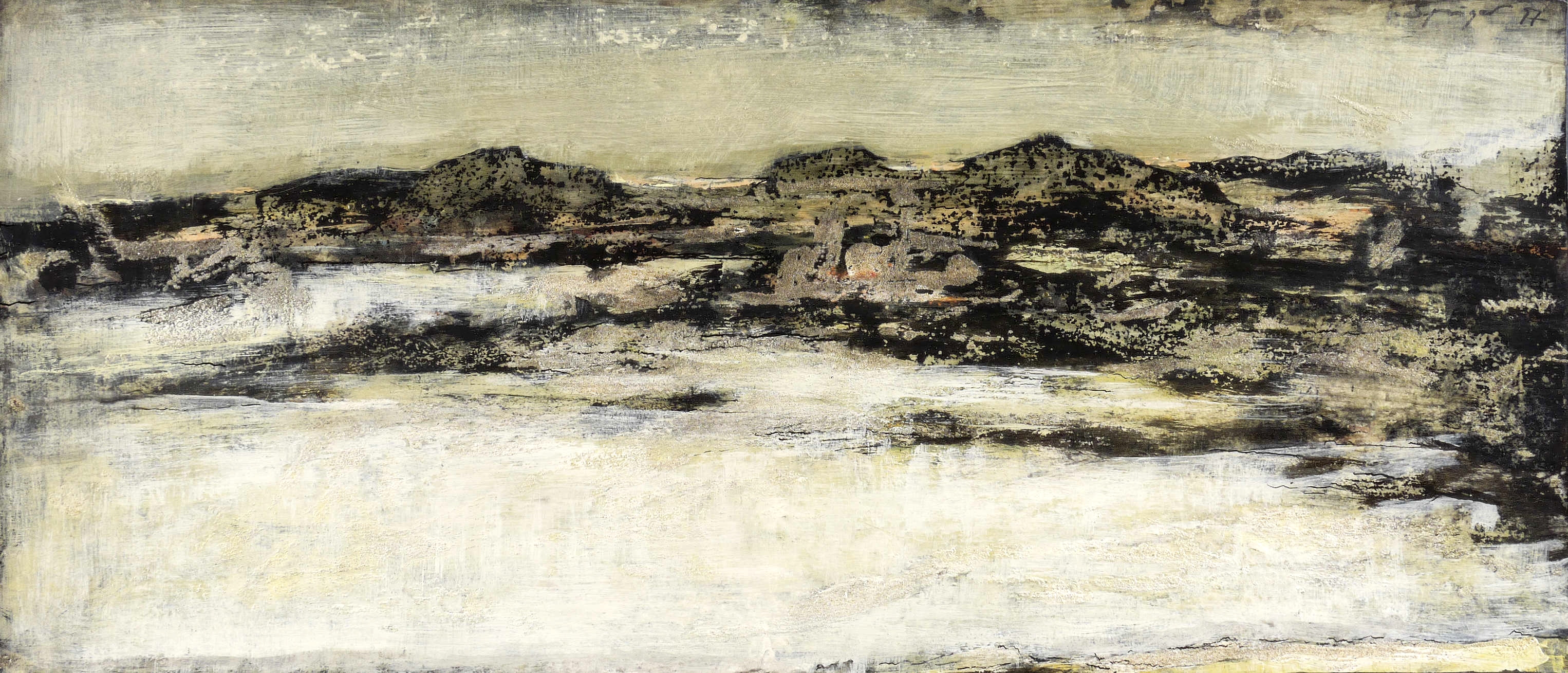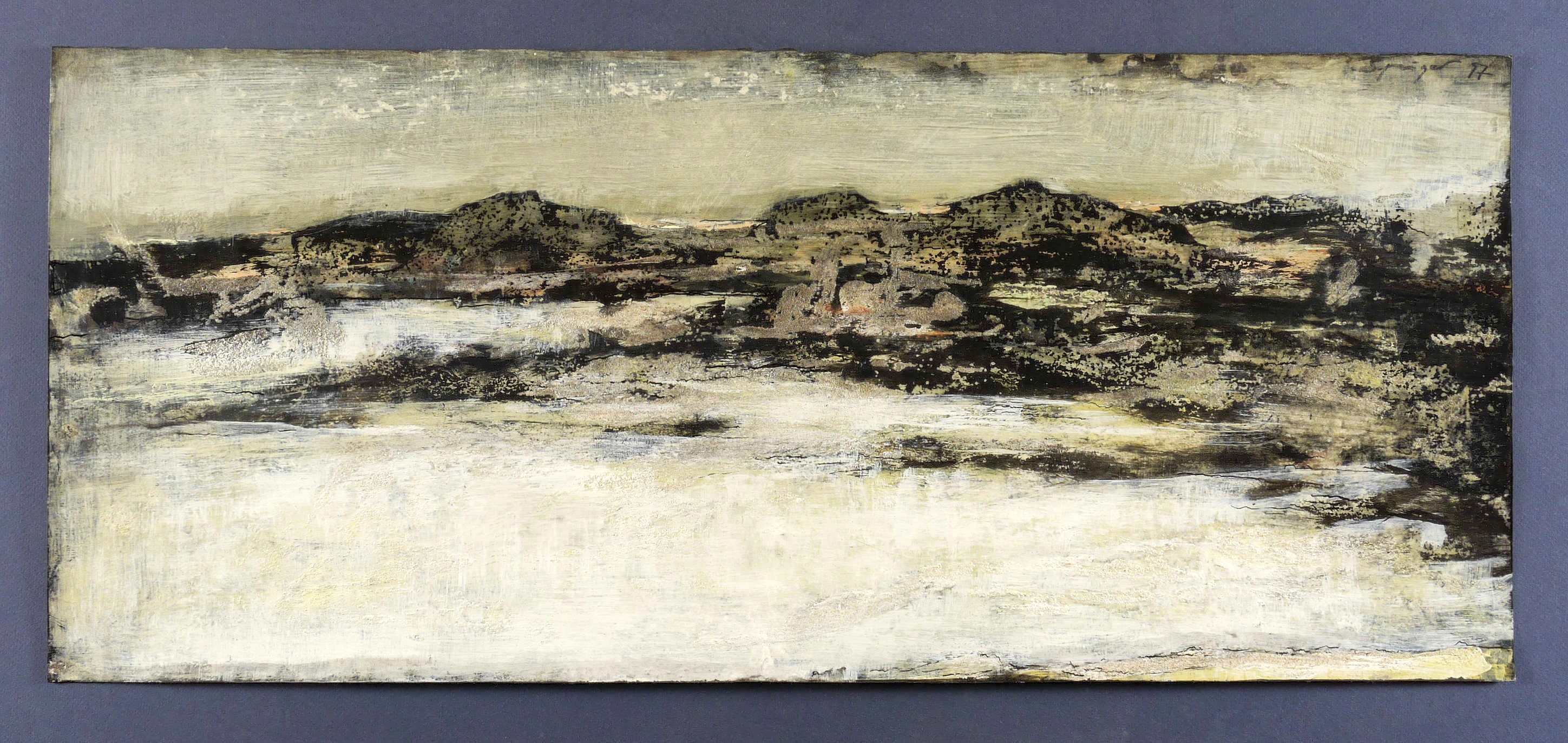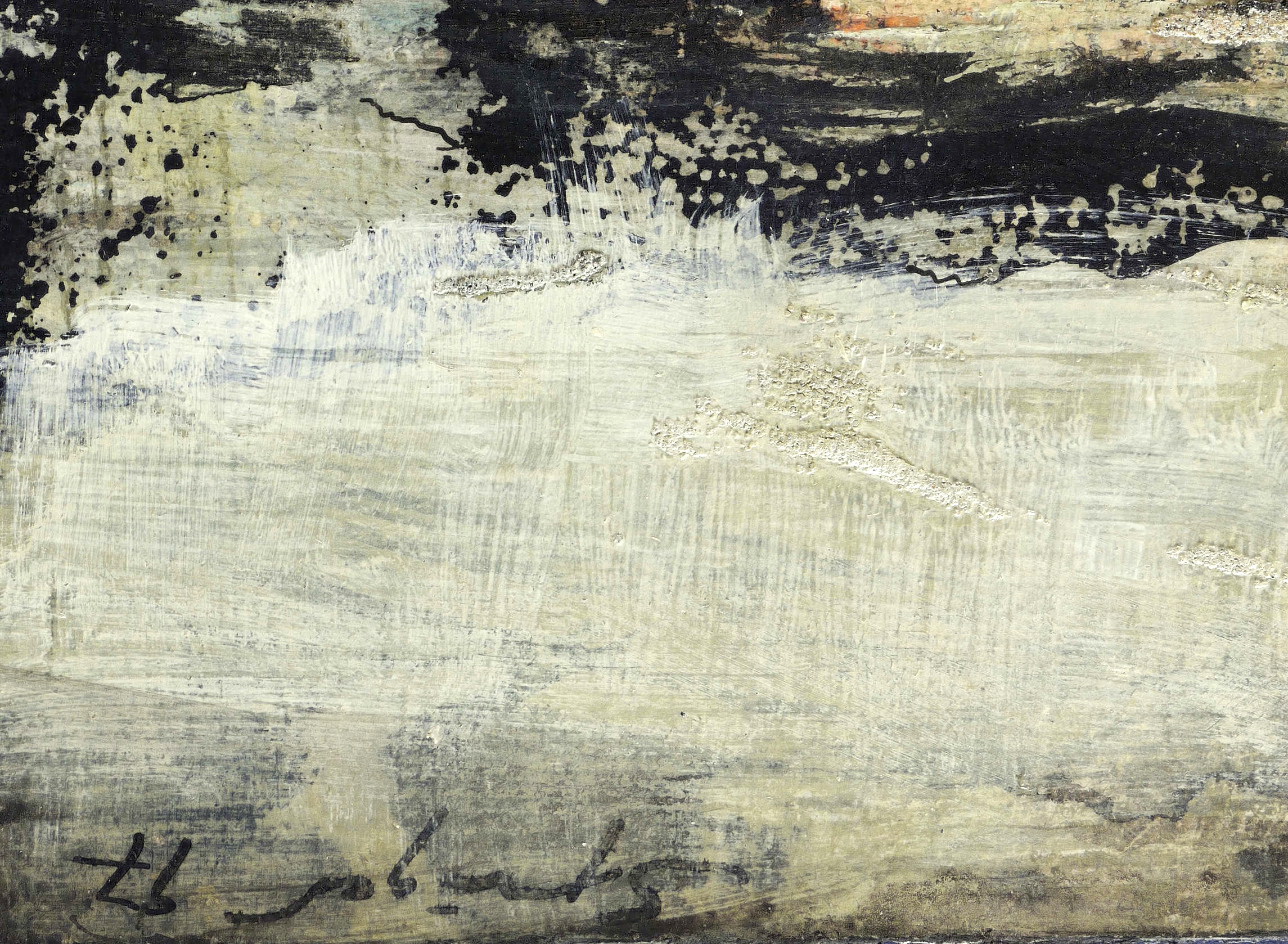 1997. Mischtechnik / Öl, Acryl & Tusche, unter Beimischung von Sand, auf Karton. – Originale Künstlergrafik, von Reinhard Springer. – Unikat. – 30,0 x 70,0 cm (Darstellung / Blatt).