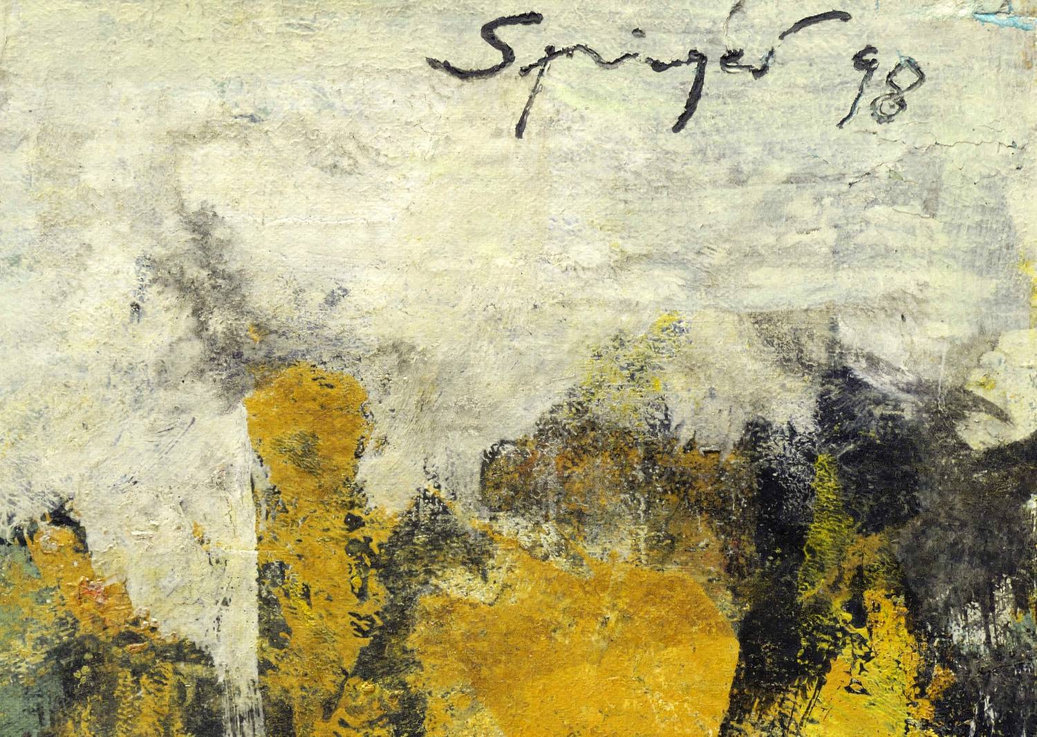1998. Mischtechnik / Öl, Acryl & Tusche, über schwarzer Kreide, auf Papier. – Originale Künstlergrafik, von Reinhard Springer. – Unikat. – 46,4 x 72,9 cm (Darstellung / Blatt).