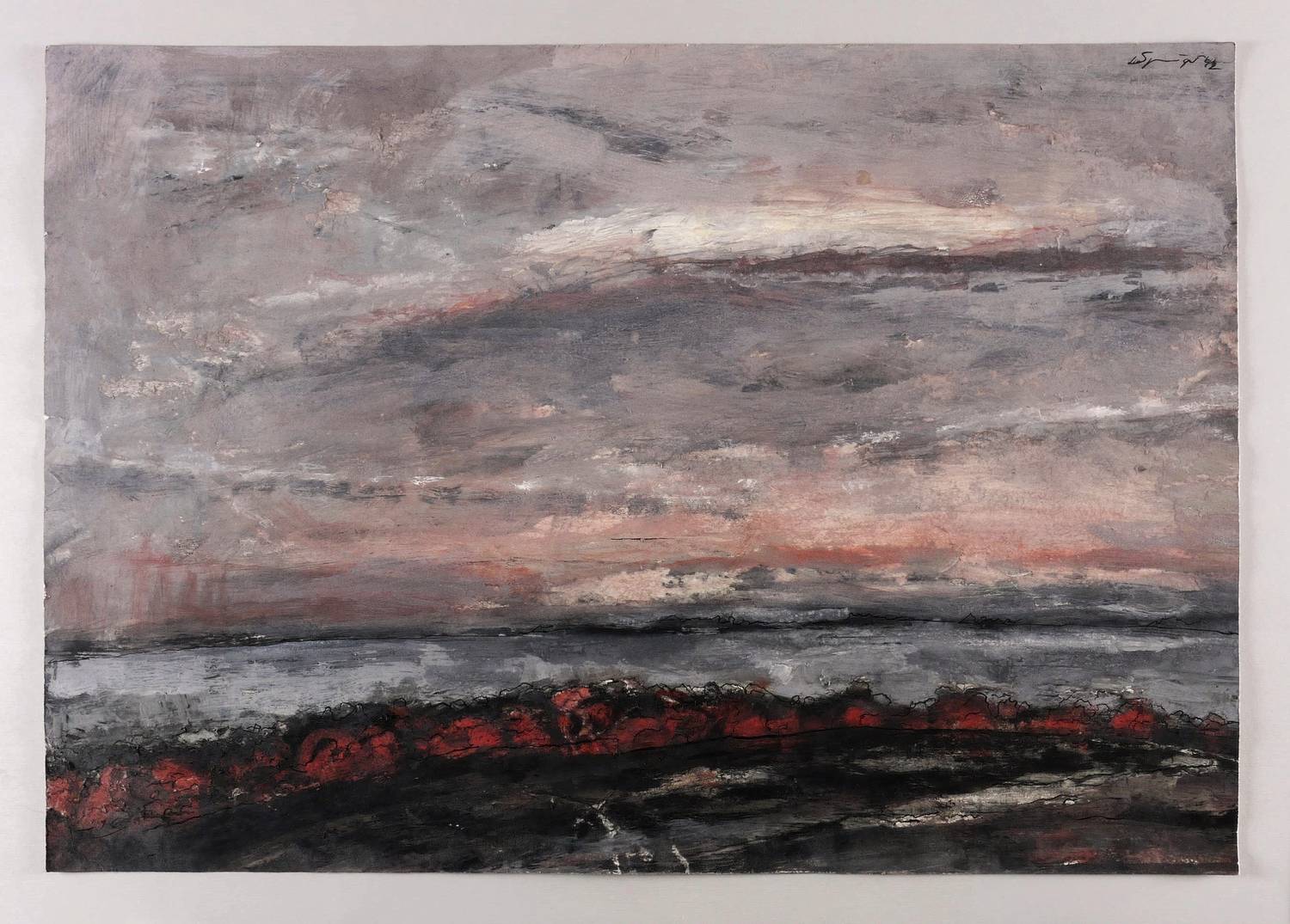 1992. Mischtechnik / Öl, Acryl & Tusche, auf schwerem hellchamois Karton. – Originale Künstlergrafik, von Reinhard Springer. – Unikat. – 55,7 x 80,0 cm (Darstellung / Blatt).