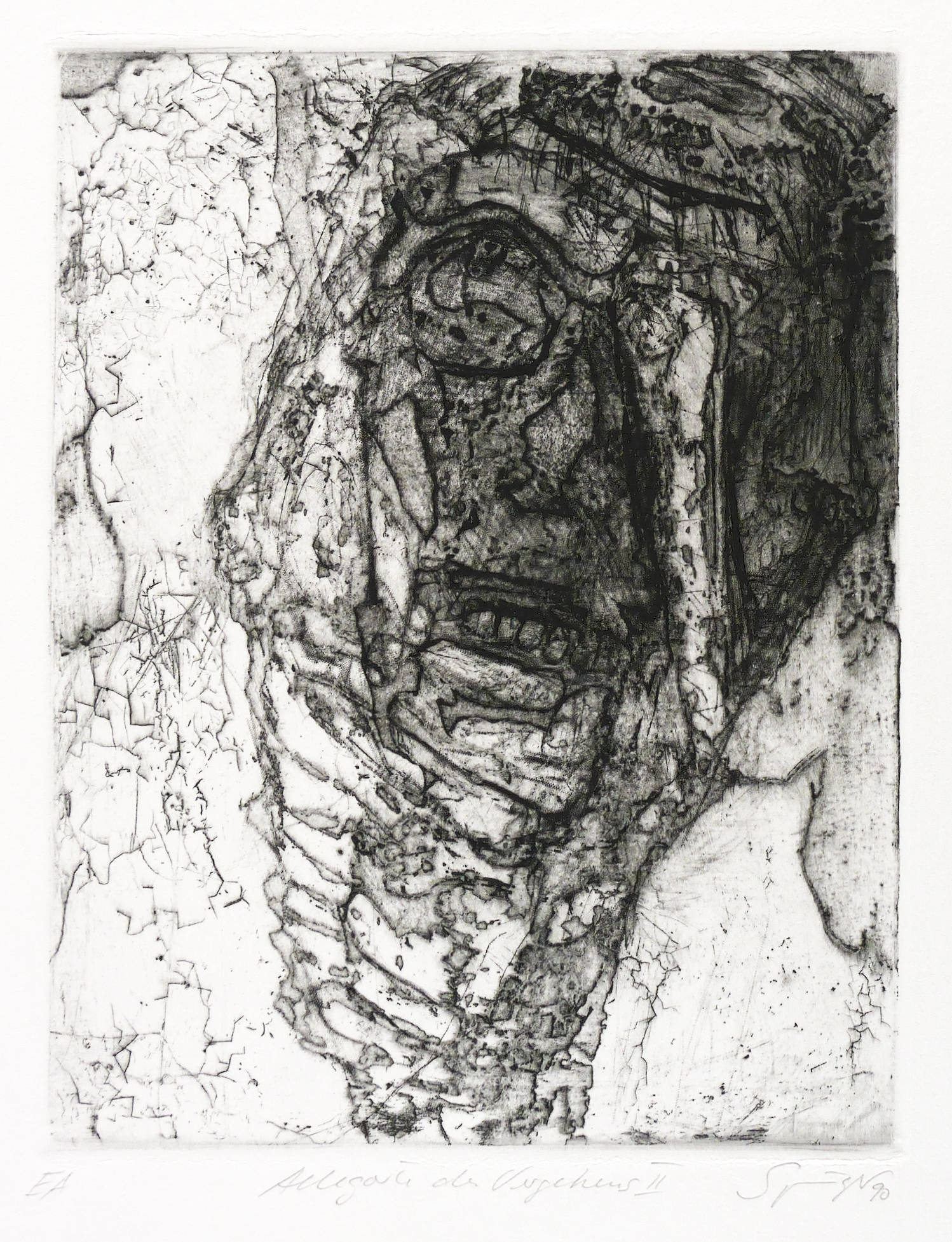 Rechts unten in Bleistift signiert und datiert: ″Springer 90″. Links Auflagenbezeichnung: ″EA″. Mittig Titel: ″Allegorie des Vergehens II″. – Provenienz: Sammlung Dr. Ingrid und Prof. Dr. Albrecht Scholz, Dresden. – Tadellos. Sehr guter Erhaltungszustand.