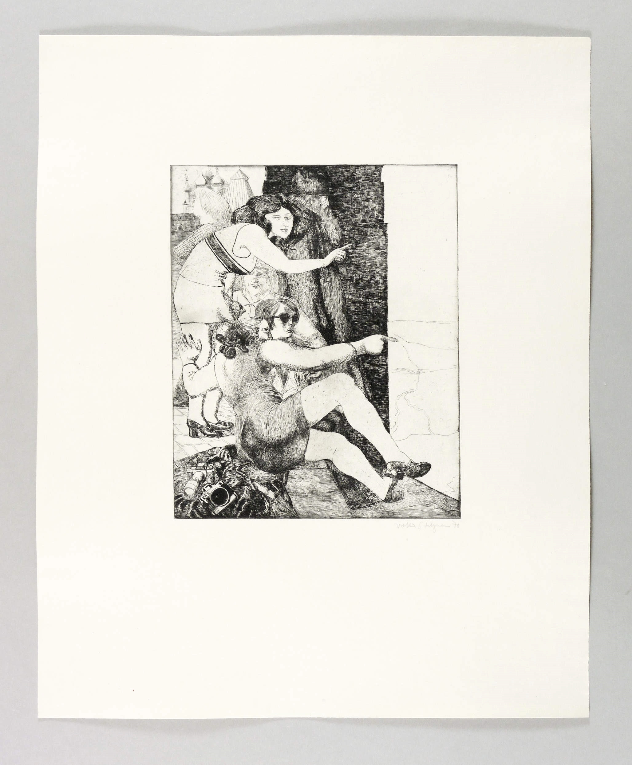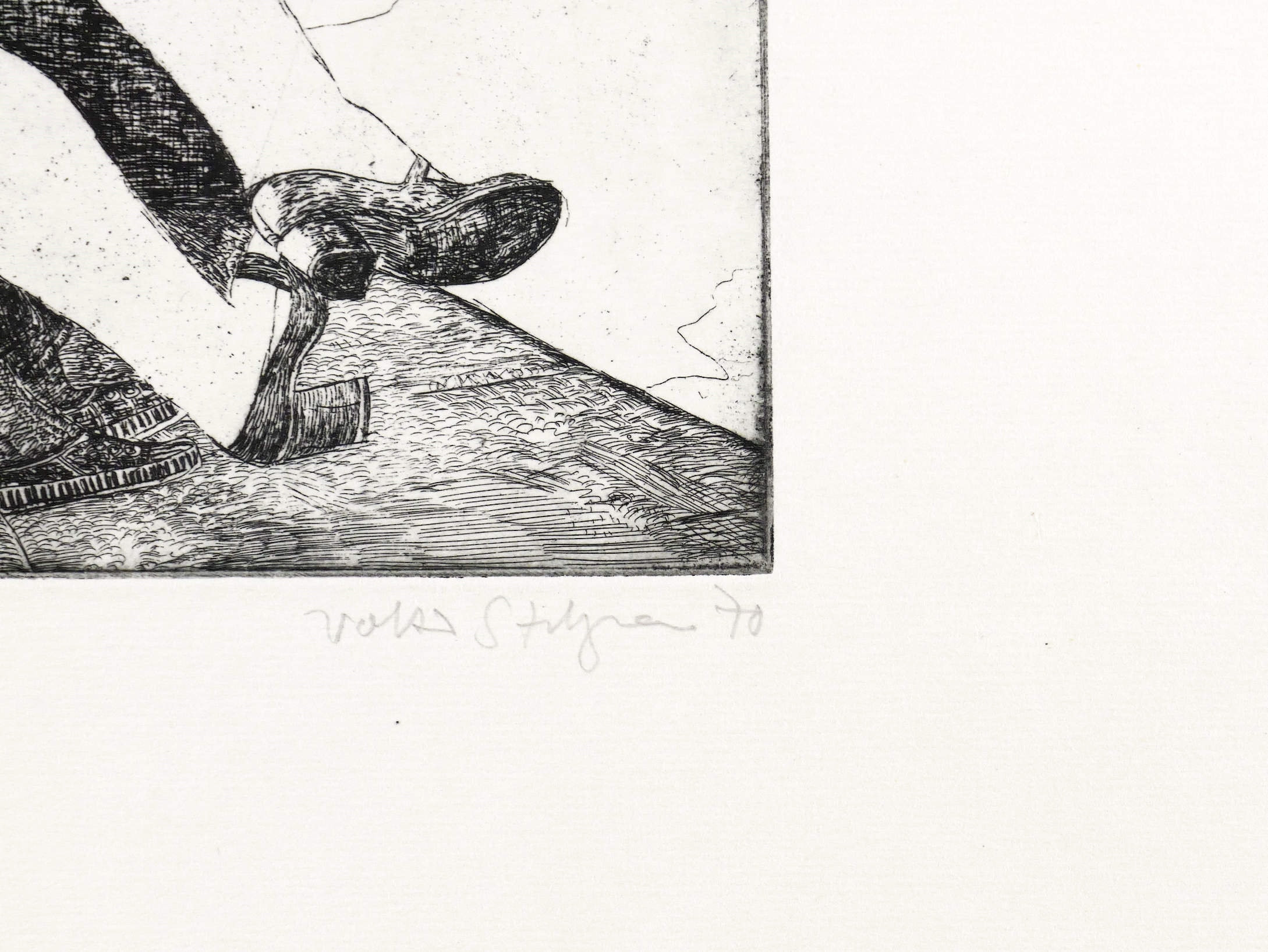 1970. Radierung / Strichätzung, in Schwarz, auf hartem gelblichem Maschinenbütten. – Von Volker Stelzmann. – 24,4 x 19,8 cm (Darstellung / Platte), 47,5 x 38,5 cm (Blatt).