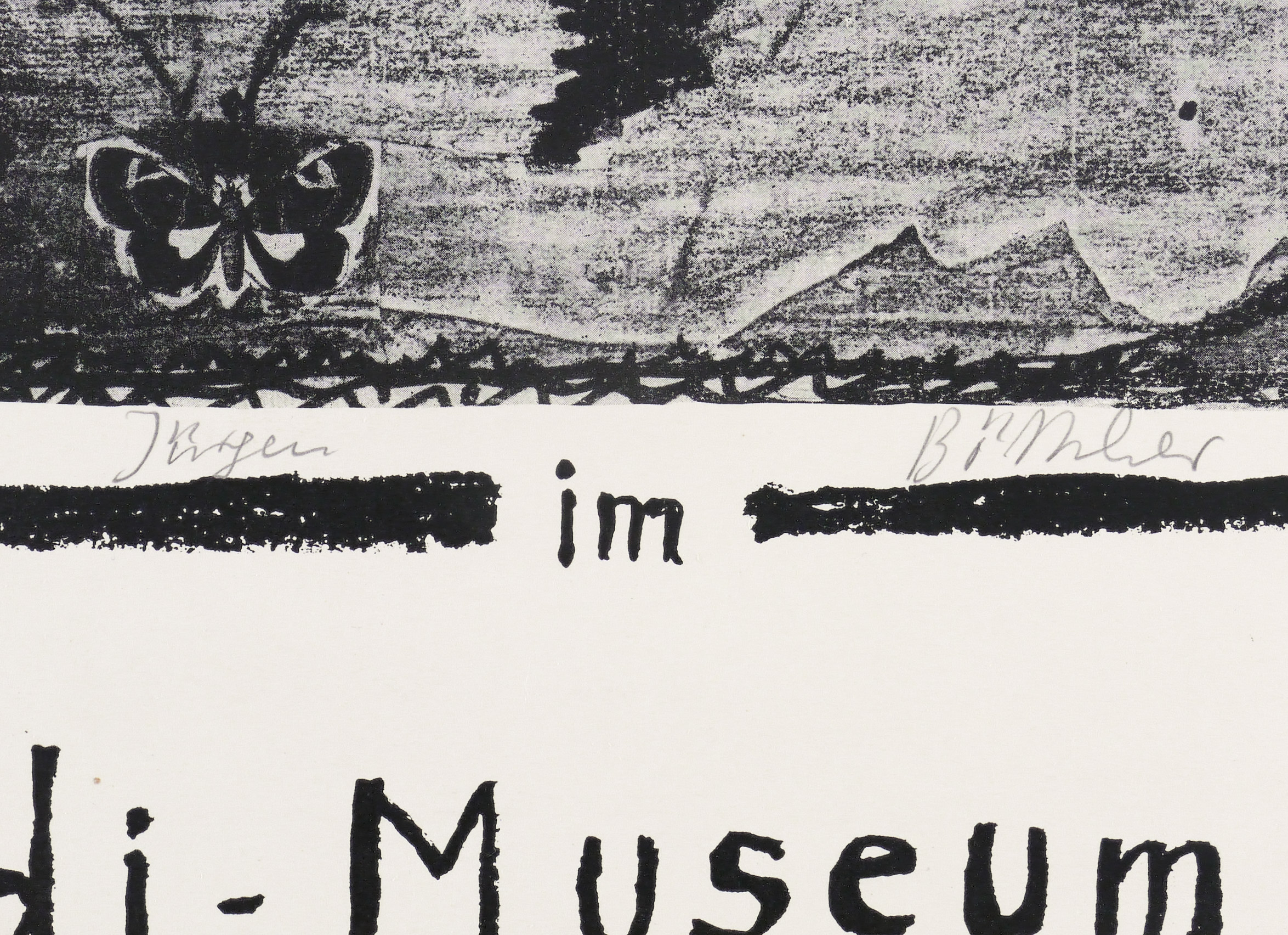 Strawalde (Jürgen Böttcher). – Ausstellungsplakat Leonhardi-Museum Dresden. – „Landschaft mit Schmetterlingen”.