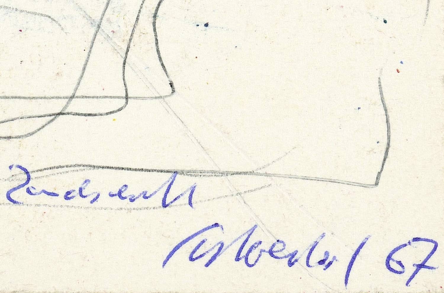 Verso mit Kugelschreiber signiert und datiert. Dazu betitelt. – Verso verworfene Fassung desselben Motivs. – Oberflächlich etwas berieben. Guter Zustand.